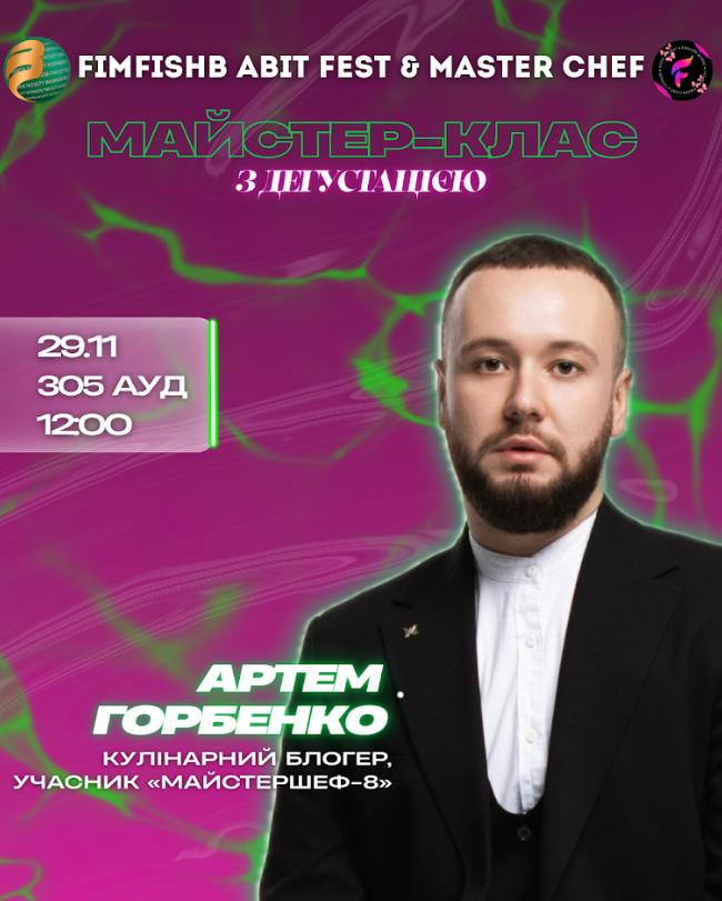 • Майстер-клас від Артема Горбенко – учасника телевізійного проєкту «Master Сhef», блогера, випускника кафедри