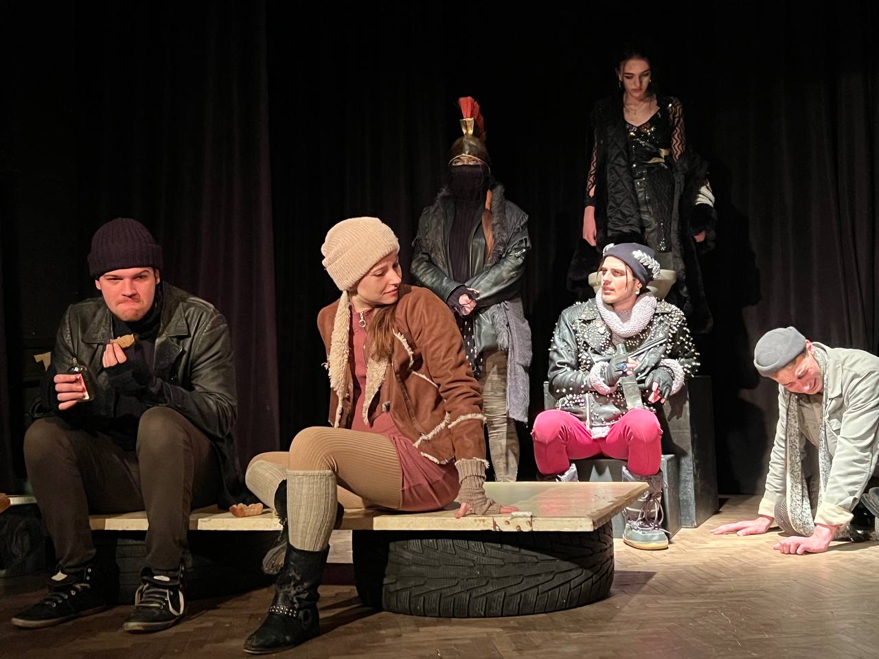 Але талановиті студенти й майстри третього курсу пішли далі у своєму баченні історії Римської імперії та інтерпретували її як притулок для безхатьків, і Калігула – не хто інший, а голова цього притулку, який годує всіх та допомагає вижити. Це прекрасно втілено у сценографії, світлі, музичному оформленні та костюмах.