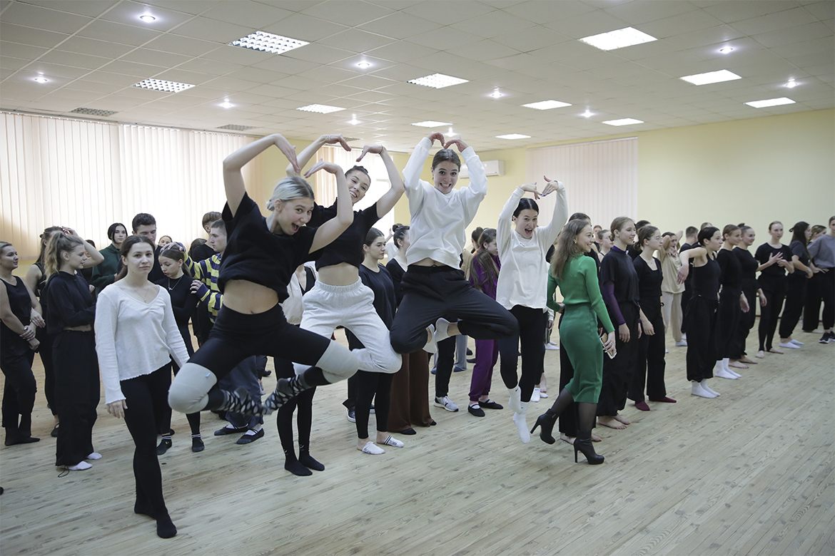 Потому студенти занурились у пристрасний і запальний бродвейський танець, відтворюючи спочатку окремі елементи, які демонстрував балетмейстер, а далі більш складні рухи.