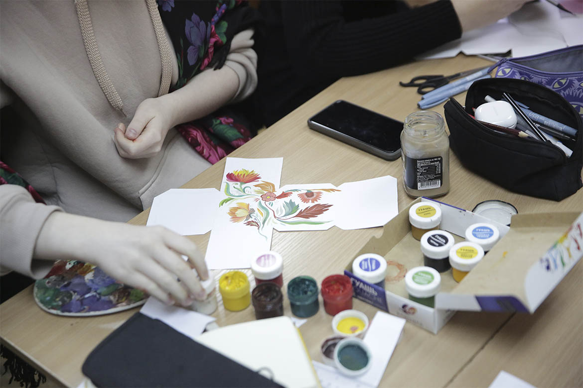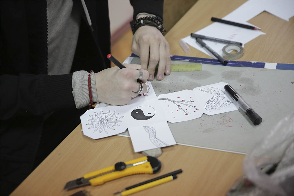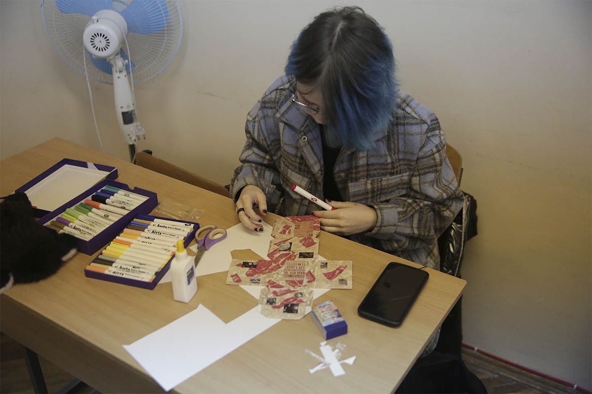Уже наступного дня першокурсники кафедри графічного дизайну взяли участь у воркшопі зі створення авторських кубиків, які потім вирішили подарувати вихованцям українських шкіл мистецтв.