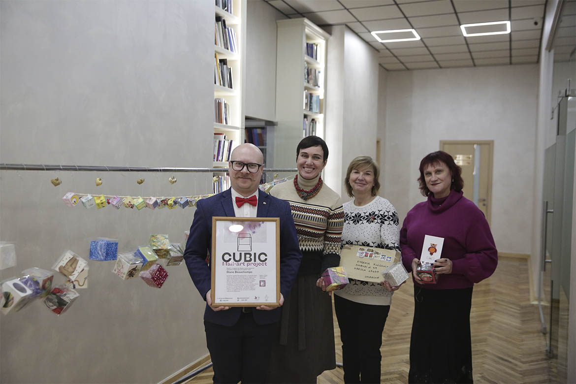 Для розкриття всіх особливостей проєкту студентів і викладачів кафедри особисто привітали пані Diane і одеська мисткиня Євгенія Колісник, яка представляє Cubic Mail Art в Україні. Присутнім було дуже приємно почути французьку мову та щирі емоції. Це додало відчуття міжнародної підтримки і надихнуло творчу молодь на створення нових цікавинок.