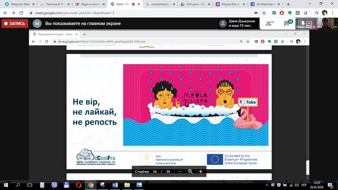 26 березня відбувся вебінар викладача кафедри Марини Толмач на тему «Медіаграмотність та інформаційна гігієна».