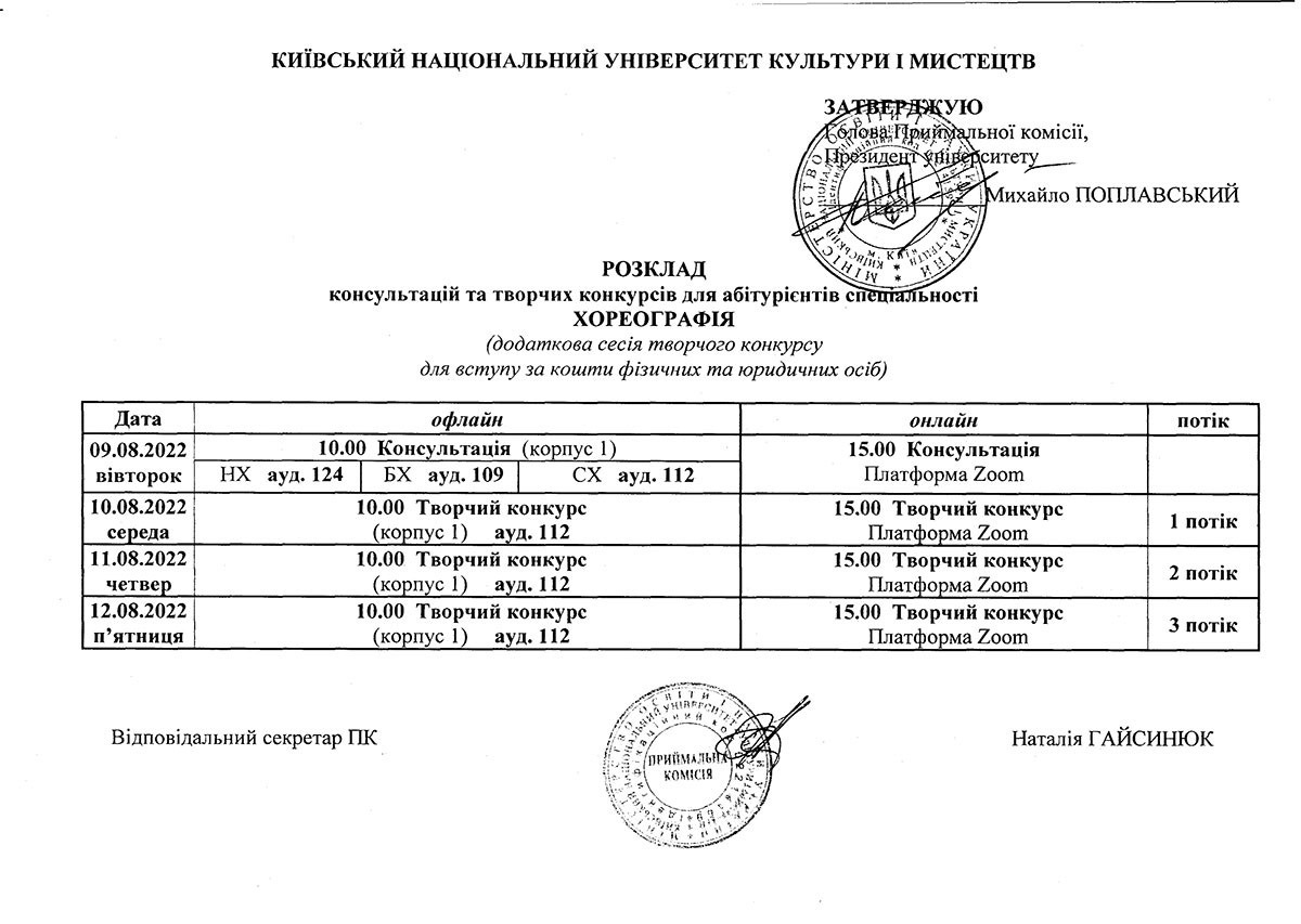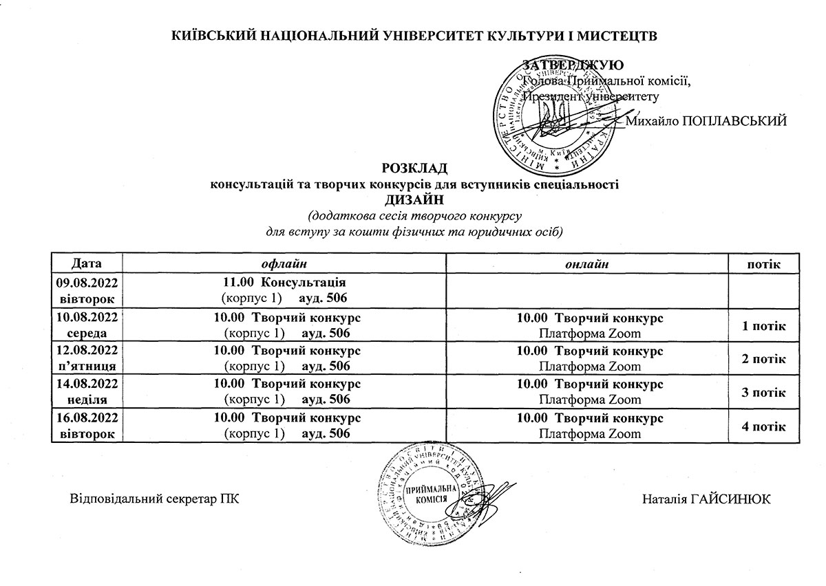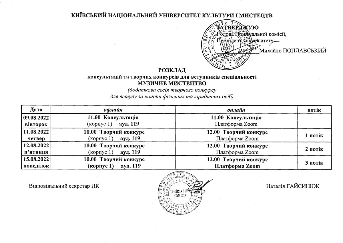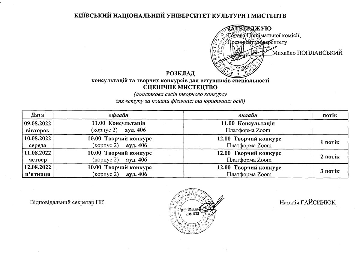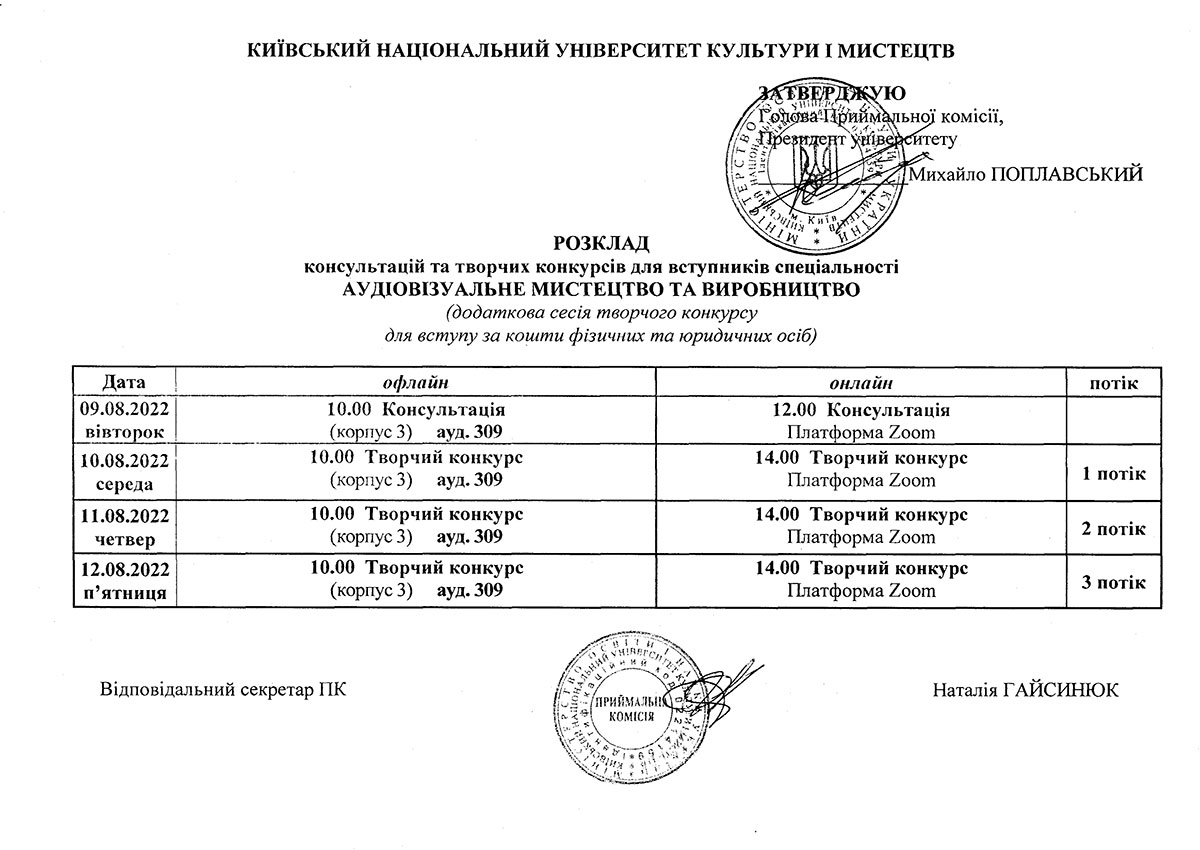 Додаткова сесія творчих конкурсів для вступу на контракт