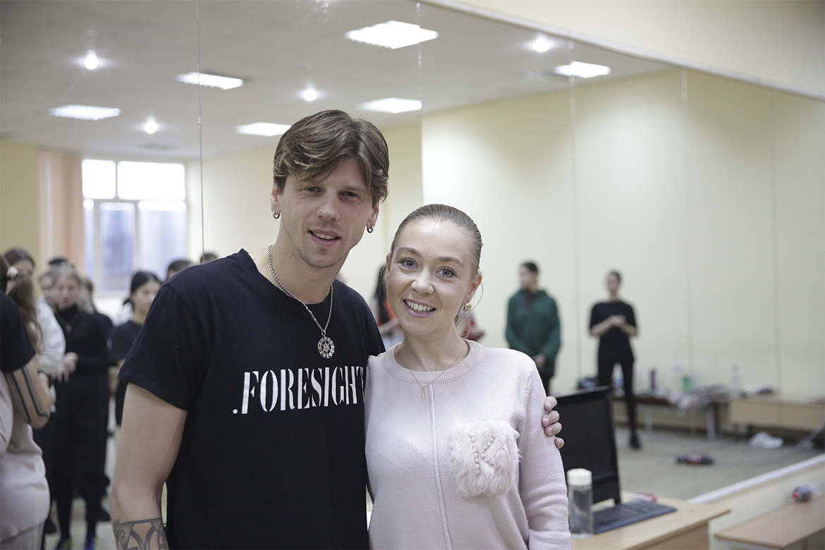 Молодь факультету хореографічного мистецтва вже знає про талант балетмейстера комбінувати різні стилі і напрями, тому із захопленням долучилась до створення нового креативного танцю.