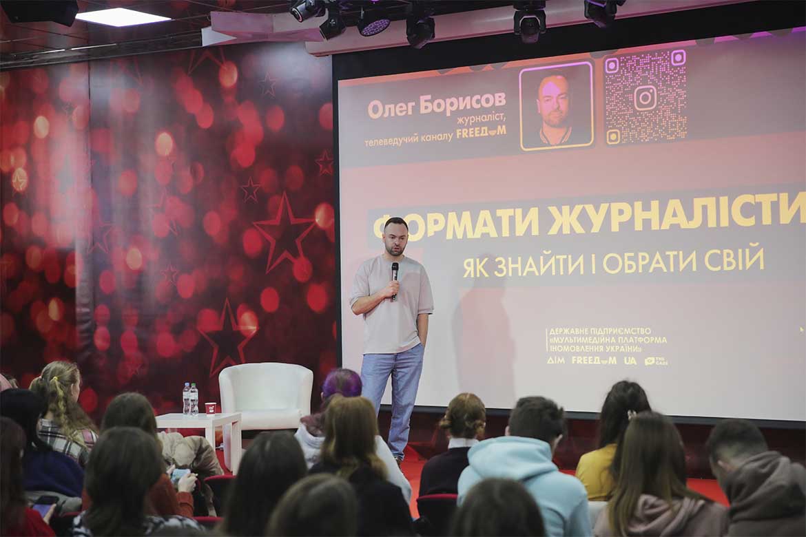 Зустріч зі студентами була побудована у форматі «запитання-відповідь». Перш за все, молодь поцікавилась у спікера щодо актуальних нині форматів журналістики. За словами О. Борисова, наразі найбільш затребуваними є інформаційний і аналітичний. Вони найдоступніші, бо їх завжди не вистачає. Також формат журналістського розслідування є досить популярним. Окрім того, travel-журналістика зараз має попит саме в YouTube, зокрема цікаві тревел-формати про Україну.