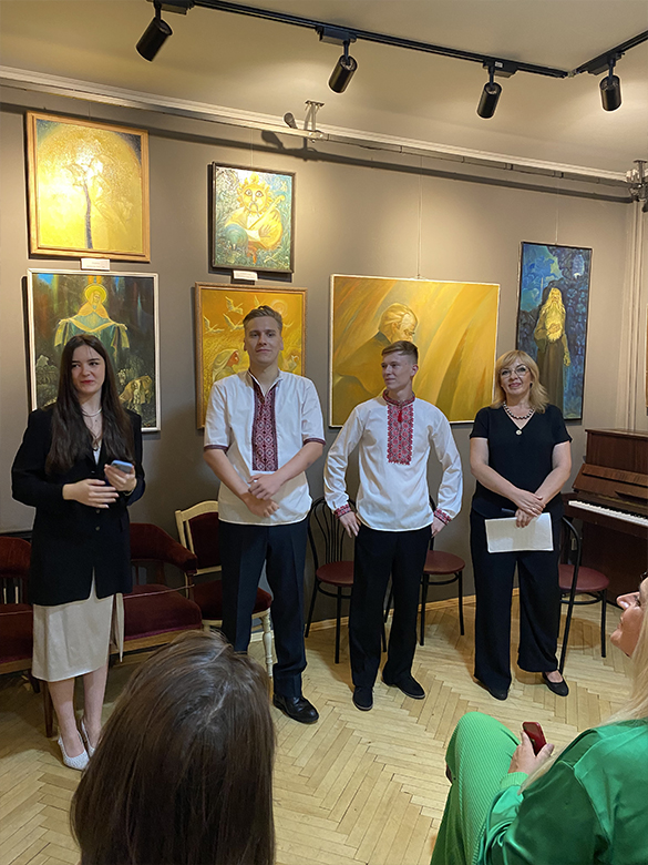 Ну а кульмінацією незабутнього вернісажу став мініконцерт, який організували і провели студенти та викладачі факультету музичного мистецтва. Присутні на відкритті виставки з великим задоволенням прослухали пісні Петра, Виборного та дуету Возного і Виборного з опери «Наталка Полтавка» у виконанні заслуженого артиста України, соліста Національної опери України, доцента кафедри музичного мистецтва КНУКіМ Михайла Кірішева і студентів КНУКіМ Андрія Трояна та Миколи Кірішева. Концертмейстерка – Світлана Сабрі.