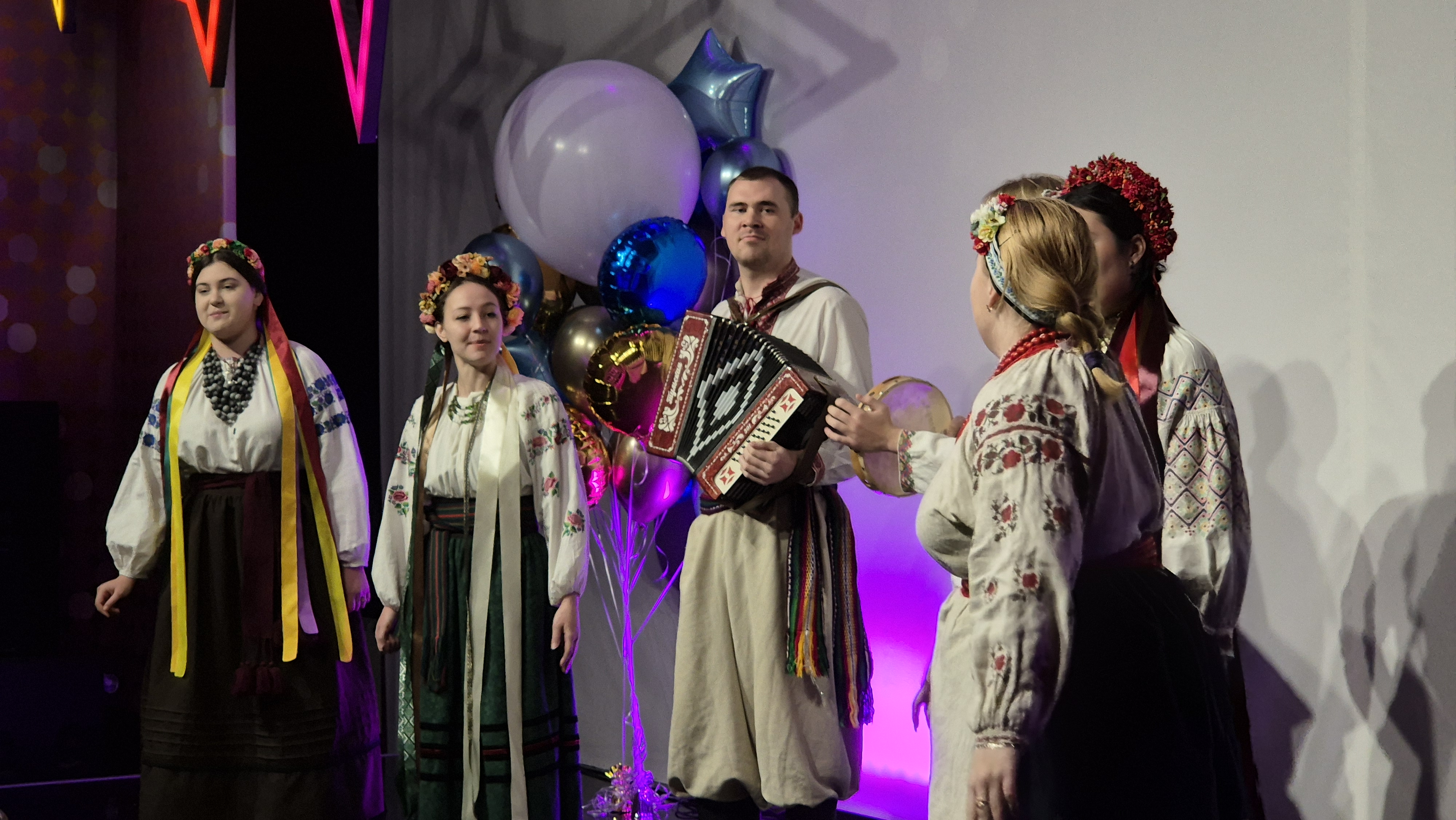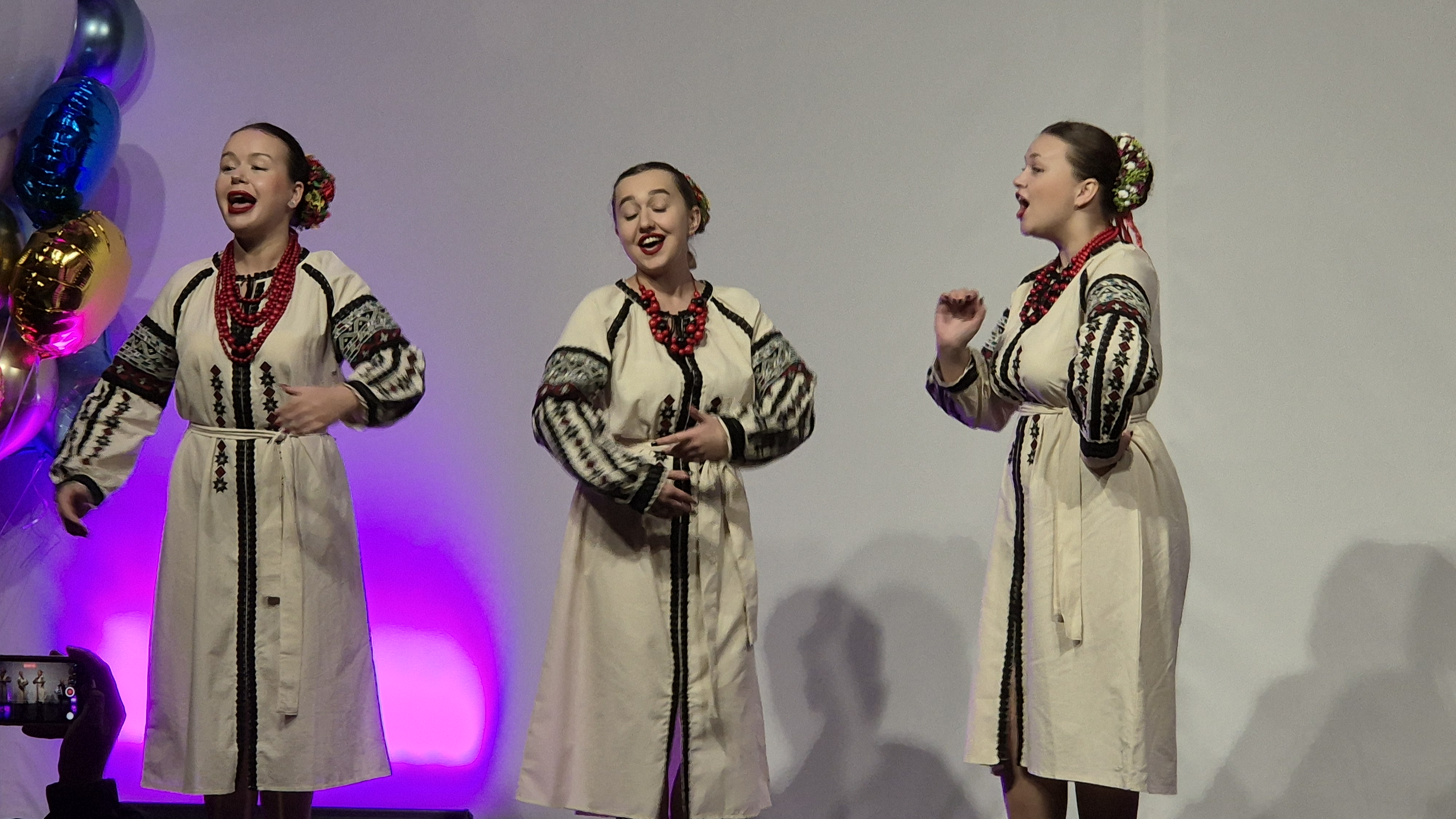 Концерт від студентів продовжився виступами першокурсників фольклорного ансамблю «Кралиця», які виконали весільну пісню та жартівливі приспівки, що створило незабутню атмосферу свята української традиційної культури.