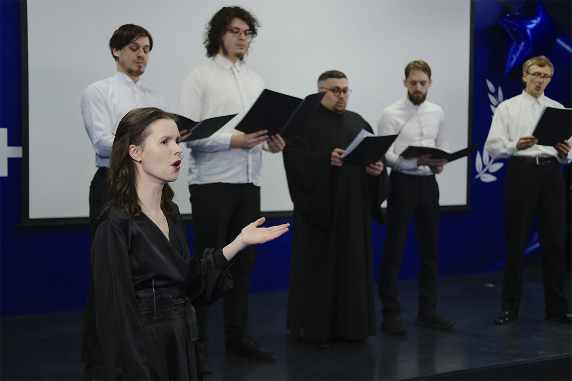 Олена Калініченко представила проєкт «Українська духовна хорова музика: особливості сучасної інтерпретації» з хорового диригування під творчим керівництвом Петра Андрійчука.