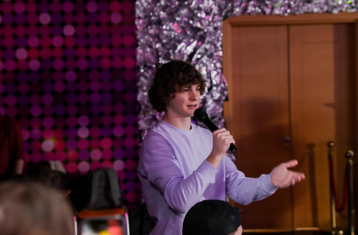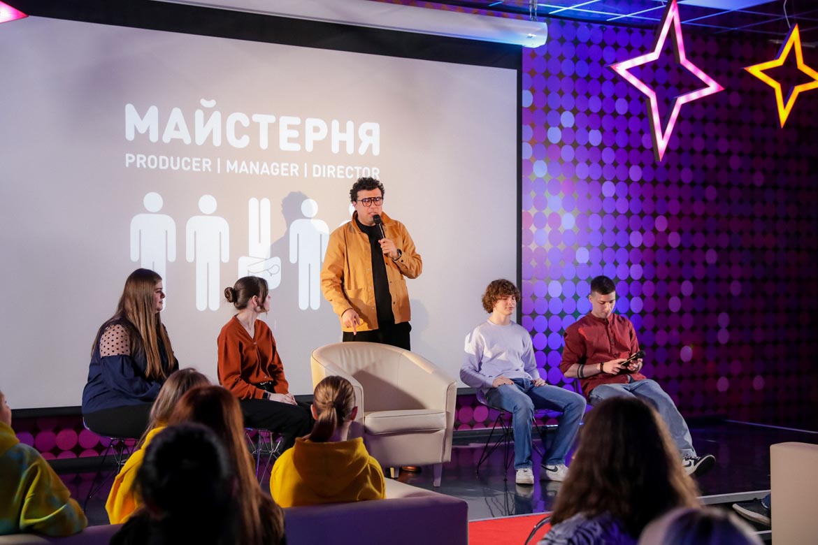 Гуморист влаштував для молоді тренінг з імпровізації, де постав у ролі інтерв’юера, а учасникам потрібно було спілкуватися, використовуючи лише слова на одну задану літеру. Головне було – закласти сюжет подальшої історії з інтерв’юером, а далі розвивати події за законами драматургії: зав’язка, розвиток дії, кульмінація, розв’язка. Тож усі добре розважились і спробували себе в жанрі експромту.