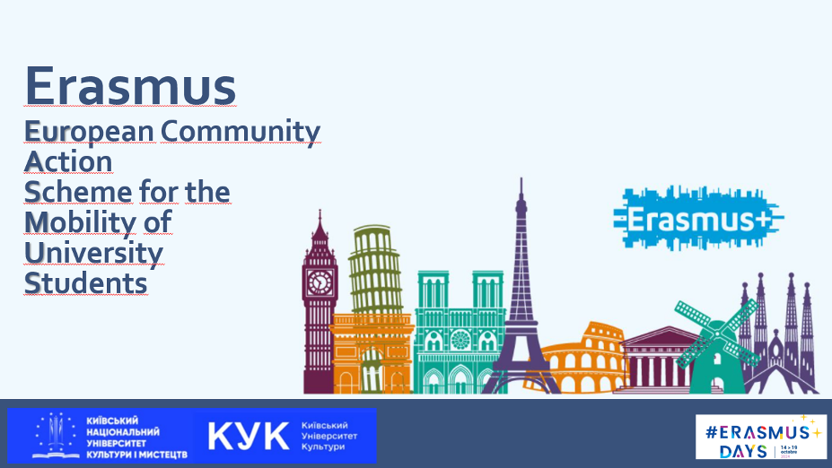У рамках міжнародної ініціативи #ErasmusDays Відділ з міжнародних зв’язків та Факультет післядипломної освіти Київського національного університету культури і мистецтв провели в онлайн-форматі «День Еразмус+ у КНУКіМ».