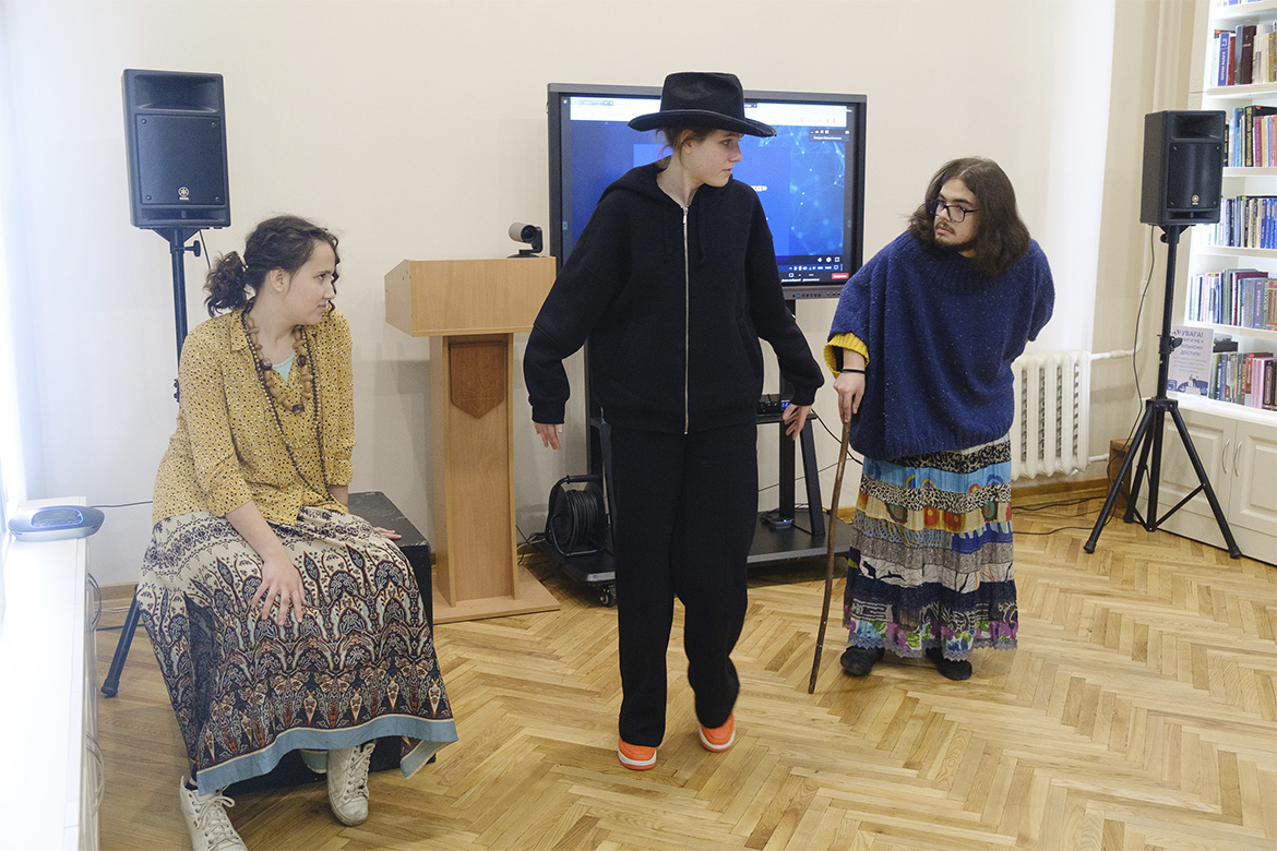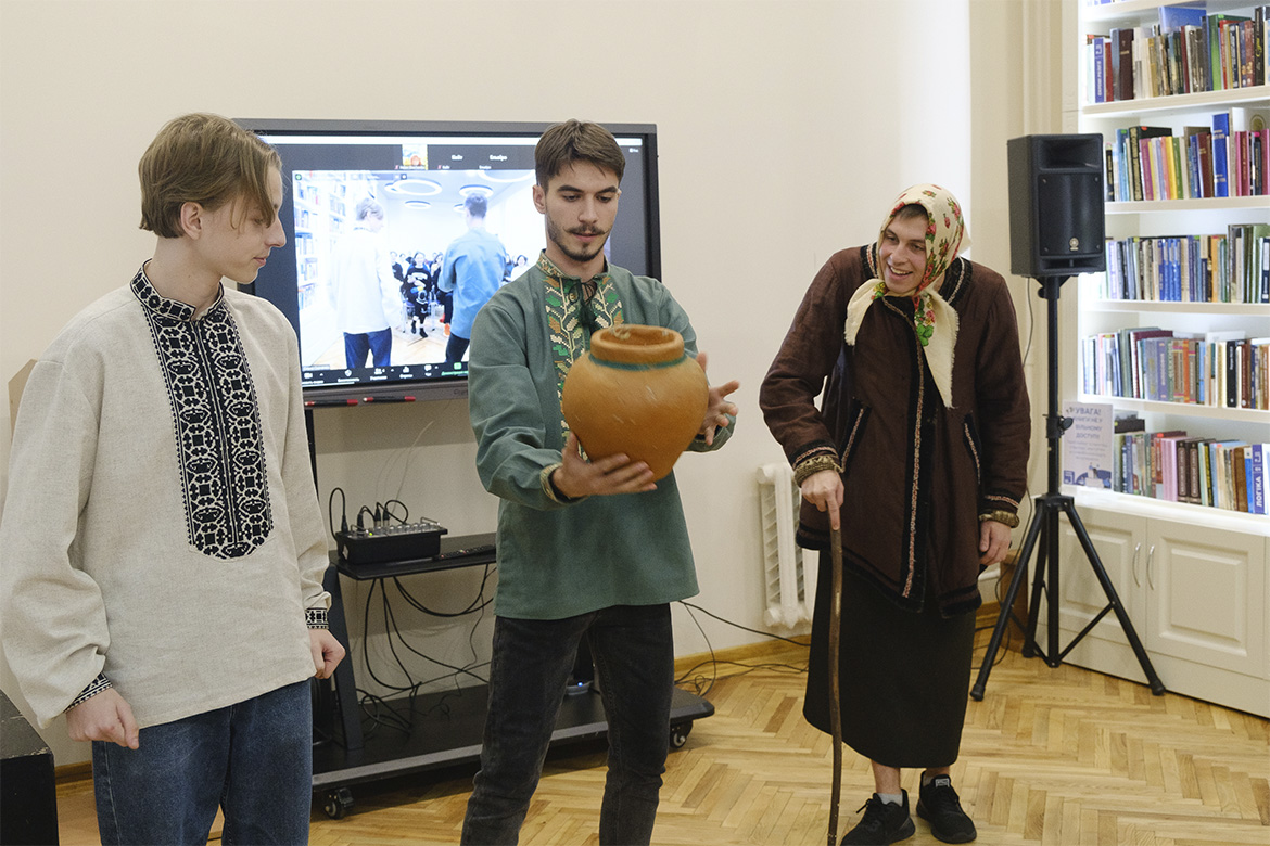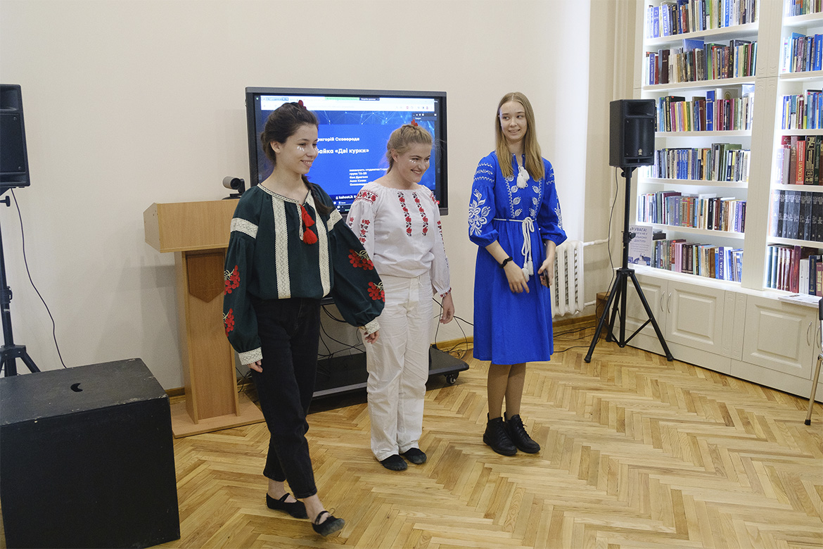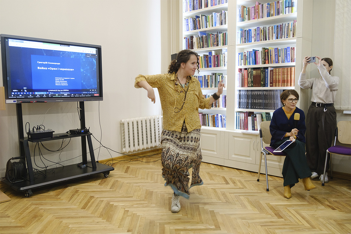 Під час проведення онлайн-вікторини розвагою для присутніх стали короткі інсценізації філософських байок Григорія Сковороди в постановці талановитих студентів 1-го курсу факультету театру, кіно та естради: байка «Жаби» у виконанні Софії Денисюк, Ігоря Сидорчука та Євгенія Хомутова (гр. ТР-33); байка «Баба та гончар» за участі Іллі Клименка, Сезонтія Поповича та Максима Чайковського (гр. ТА-13); байка «Орел і черепаха», яку розповіли Марія Євлахова, Даниіл Іващенко та Мішель Щербина (гр. ТА-53), і байка «Дві курки» від студенток групи ТА-23 Єви Дриголи, Анни Козак та Олександри Процевської. Ідеї Григорія Сковороди про споріднену працю, видиму та невидиму натуру людини, про щастя як покликання, яке здобувається чесним ремеслом, звучали словами його творів, які студенти наповнили живими та яскравими образами.