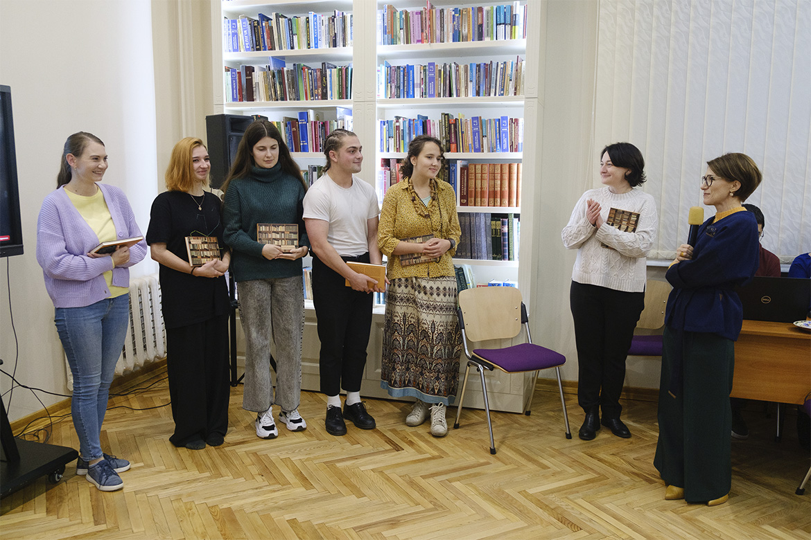Наприкінці філософської імпрези були підбиті підсумки творчого конкурсу мотиваційних гасел, присвячених ювілею бібліотеки КНУКіМ, та оголошено переможців. Ними стали студентка групи ІМ-33 Ірина Бондаренко, яка отримала найбільше реакцій від дописувачів у соцмережі «Інстаграм», і студент групи ІМ-13 Олександр Нагорний, який був визнаний переможцем під час проведення конкурсу у студентській аудиторії в межах вивчення дисципліни «Культура публічного мовлення». Переможців нагородила креатор конкурсу Олена Скаченко.
