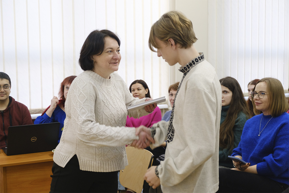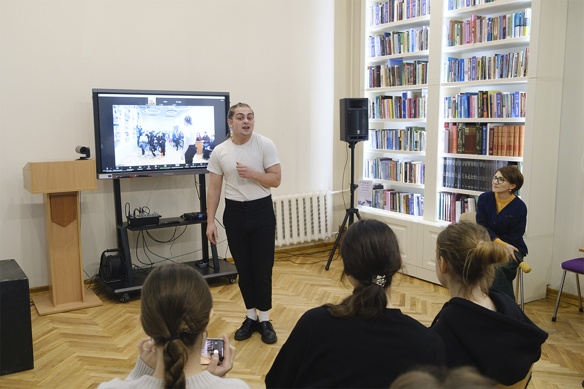 Студенти групи ТА-13 Артем Вірьовка та Софія Богорош продекламували вірші Григорія Савича «De Libertate» та «Чим зайнятий тепер твій меткий розум».