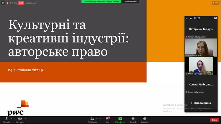 - культурні та креативні індустрії: авторське право;