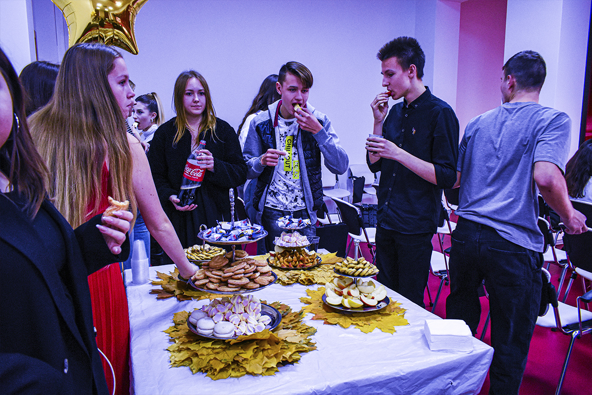 Тим часом, всі охочі могли поласувати смачними десертами з кенді-бару. А потім переглянути виставу – уривок з п’єси «Майстер і Маргарита», яку втілили в життя обдаровані студенти.