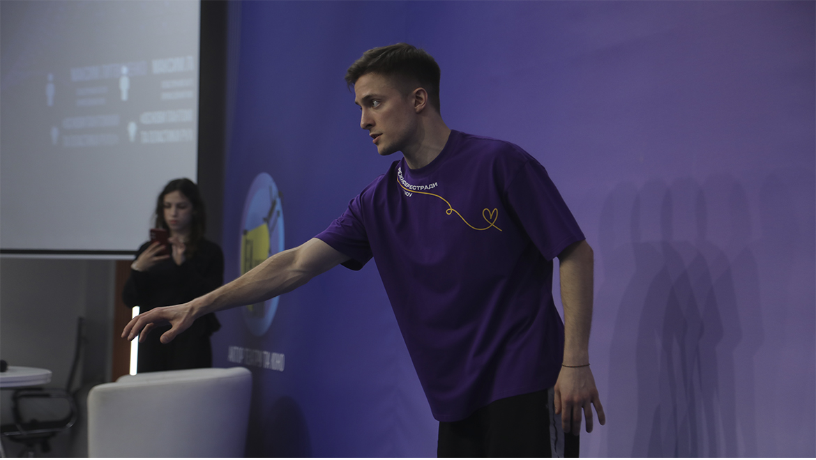 У першій частині зустрічі Максим поділився особистою історією — як почав працювати з тілом, відкрив для себе мову пластики, відточував техніку руху й вчився розповідати історії без жодного слова.