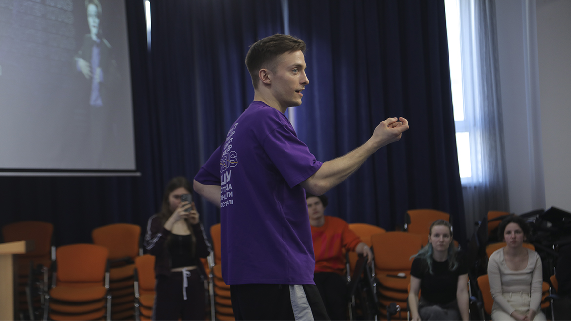 На Кафедрі режисури естради та шоу КНУКіМ відбувся майстер-клас від Максима Литвиненка – професійного міма та пластичного актора.