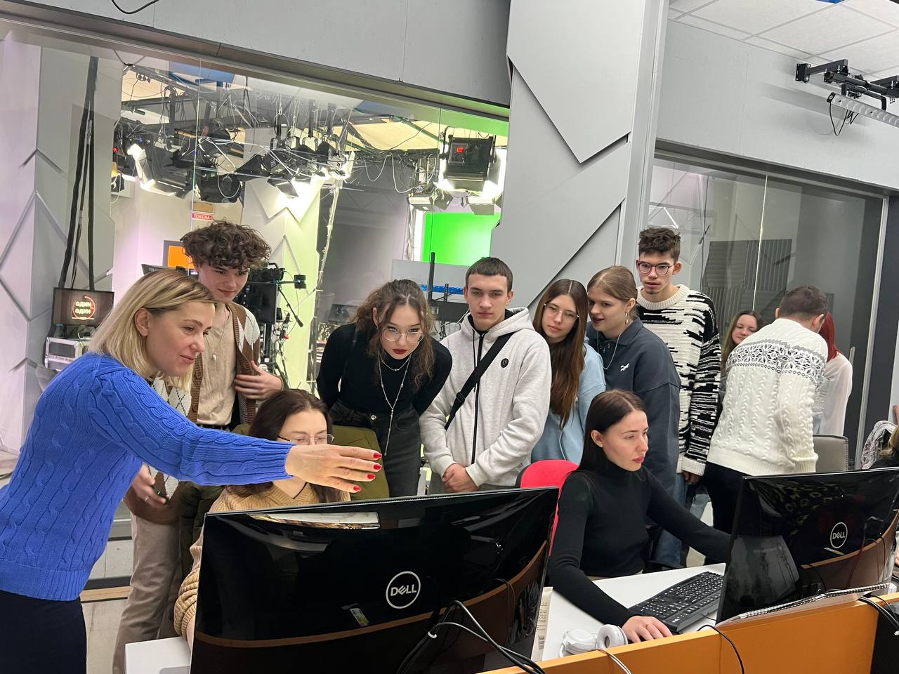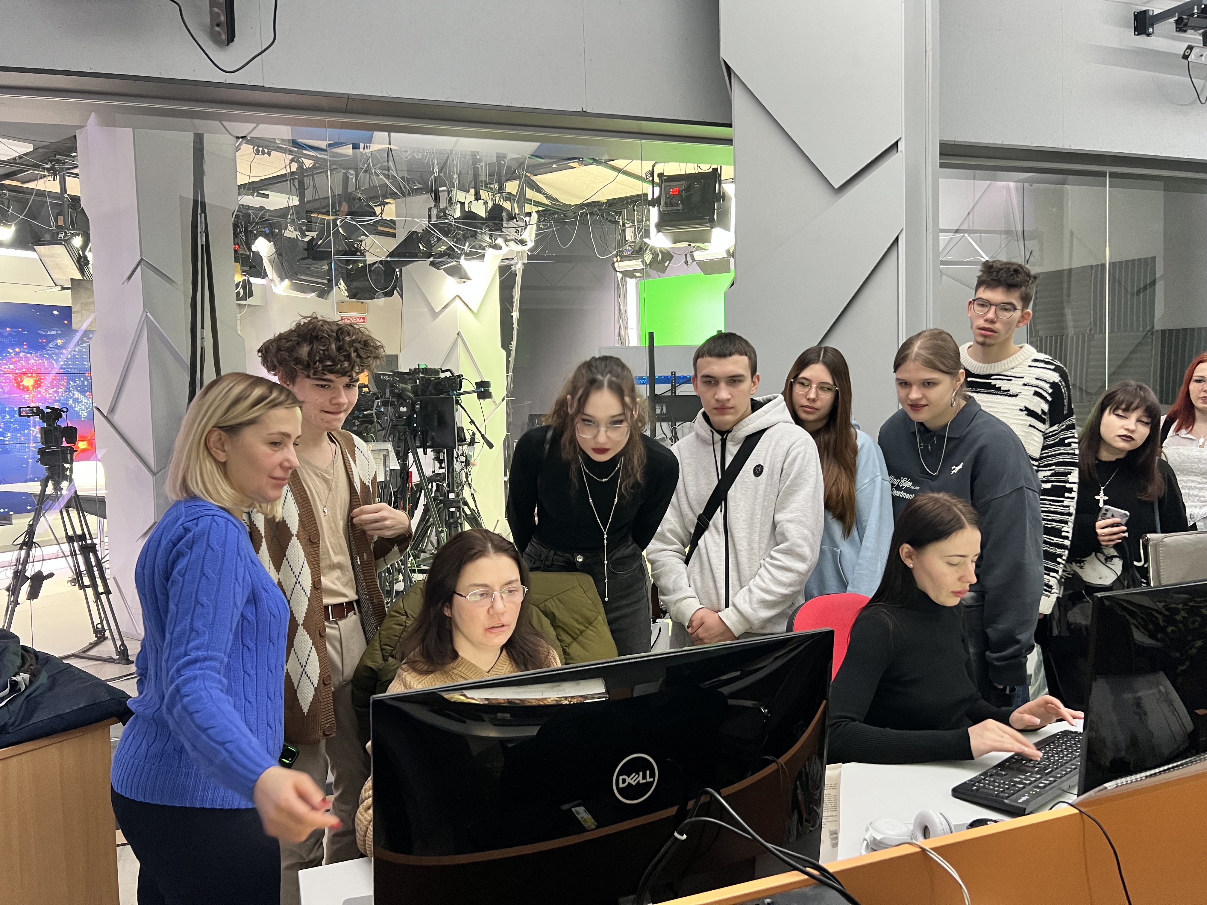 Під час екскурсії студенти побували у студії та апаратній, поспостерігали за роботою операторів, режисерів монтажу, редакторів і ведучих.