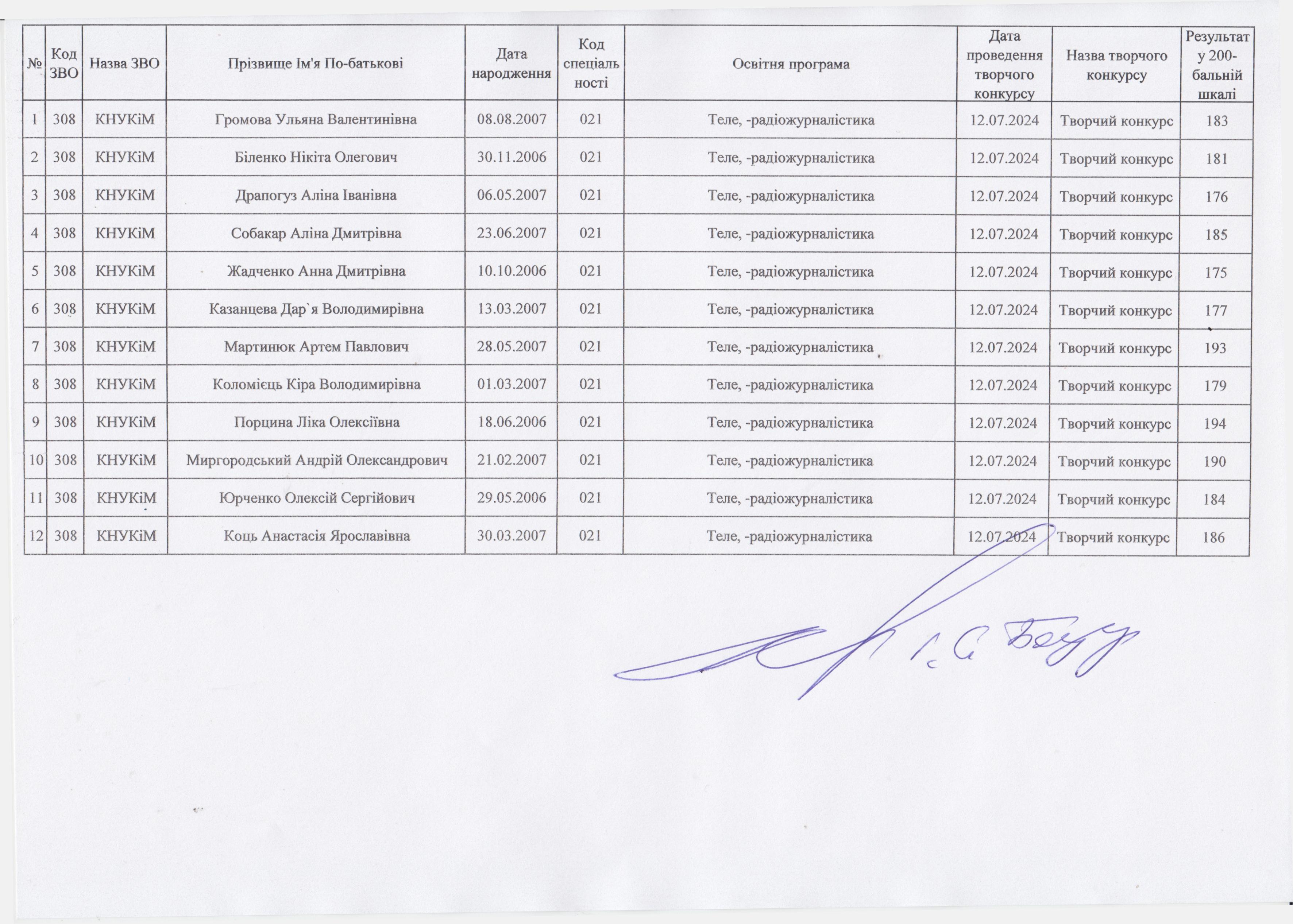 Результати творчих конкурсів за 12.07.2024