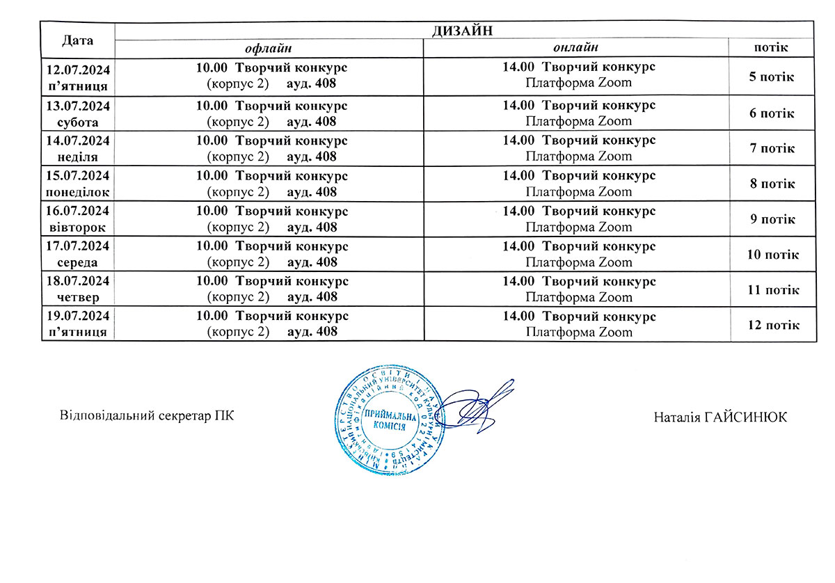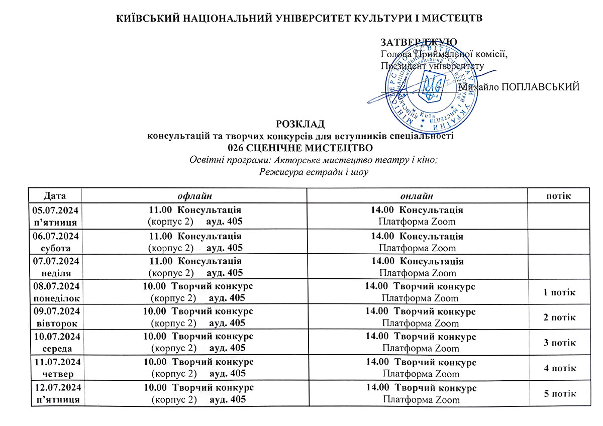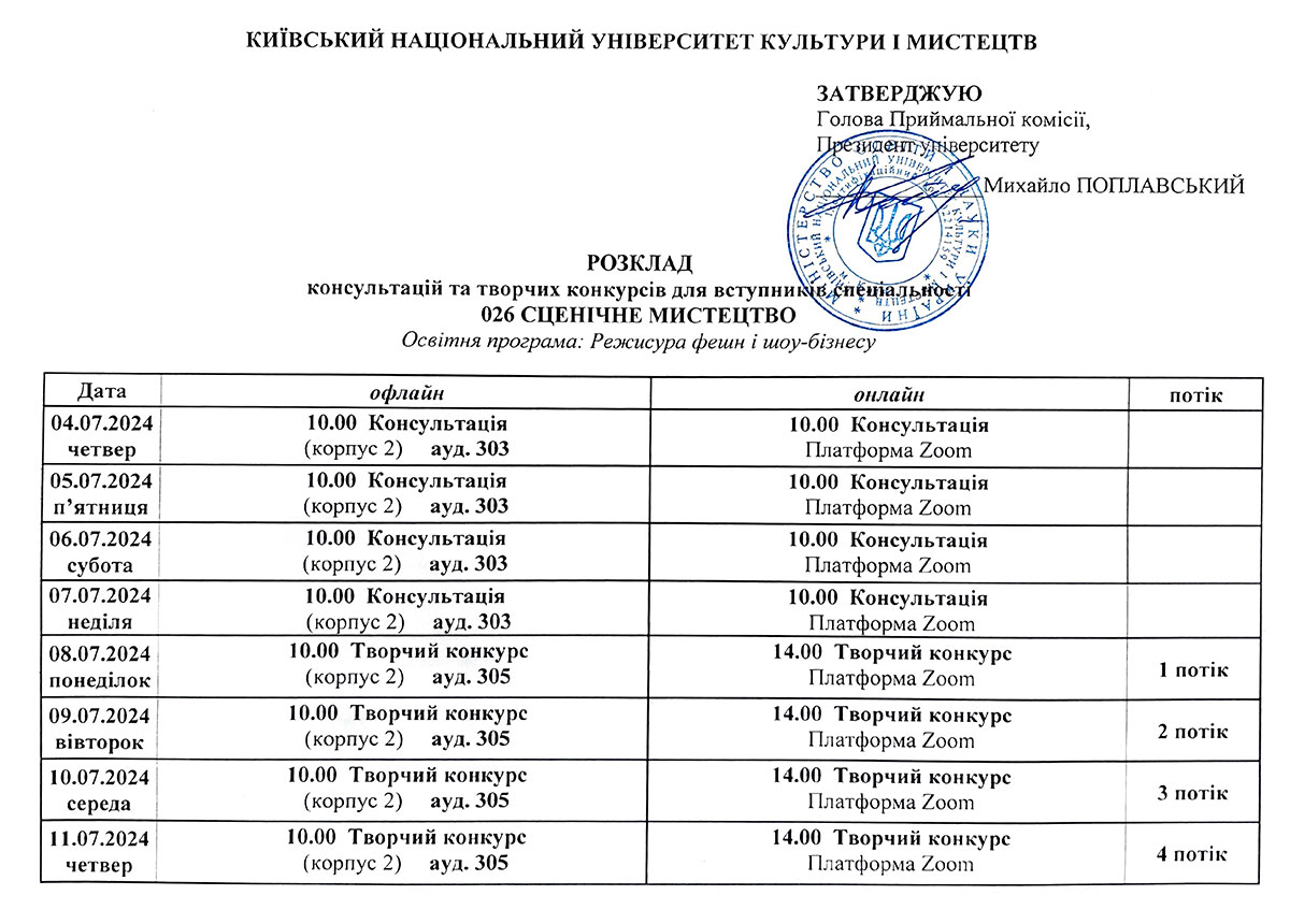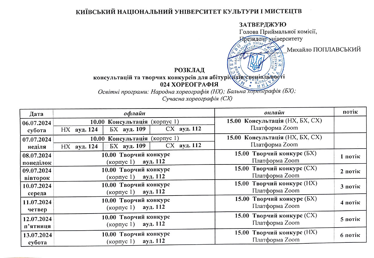 Розклад консультацій та творчих конкурсів/Бакалаврат