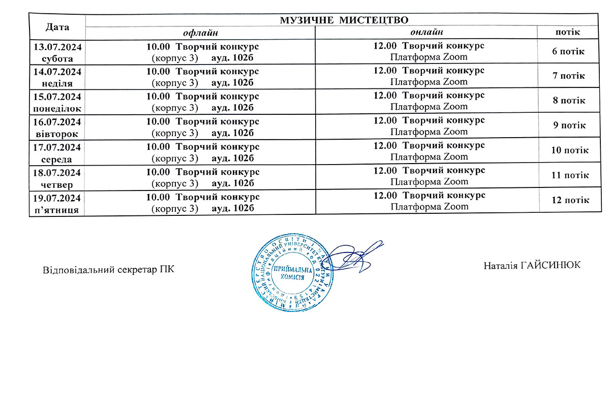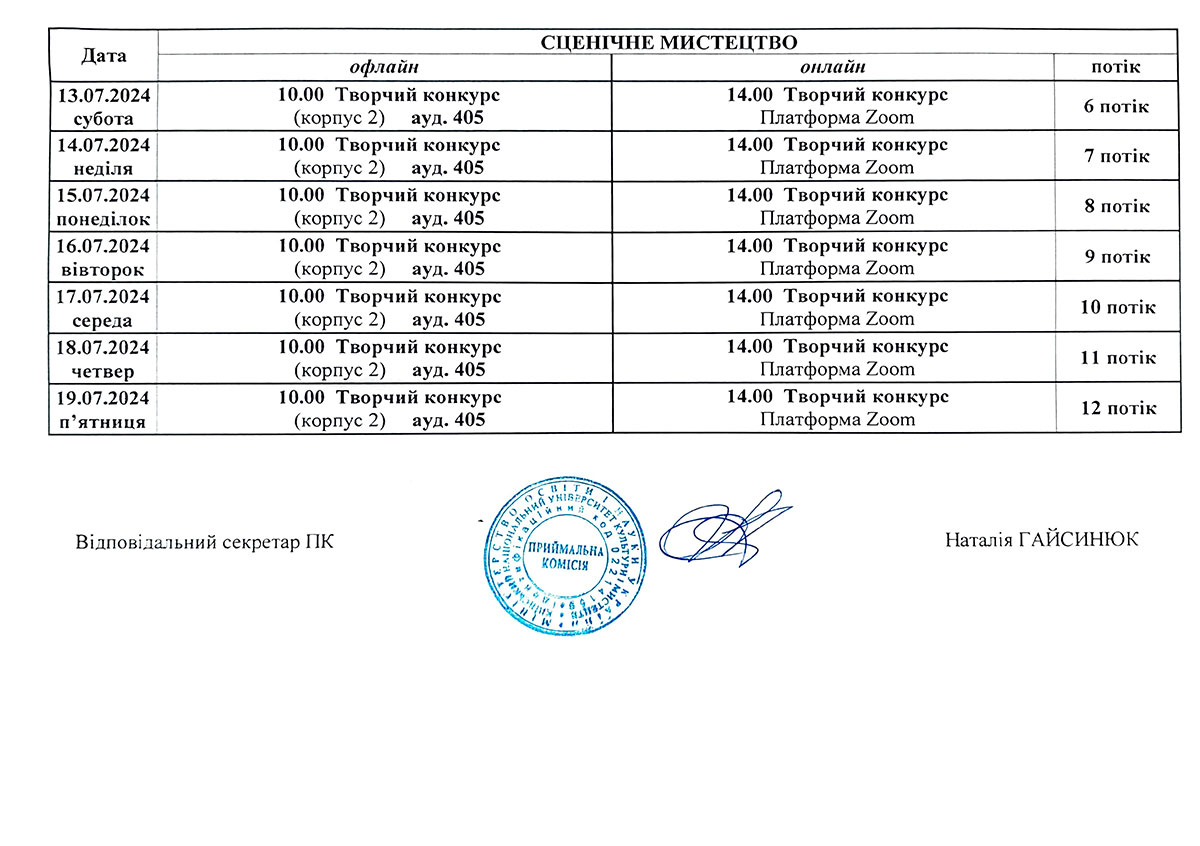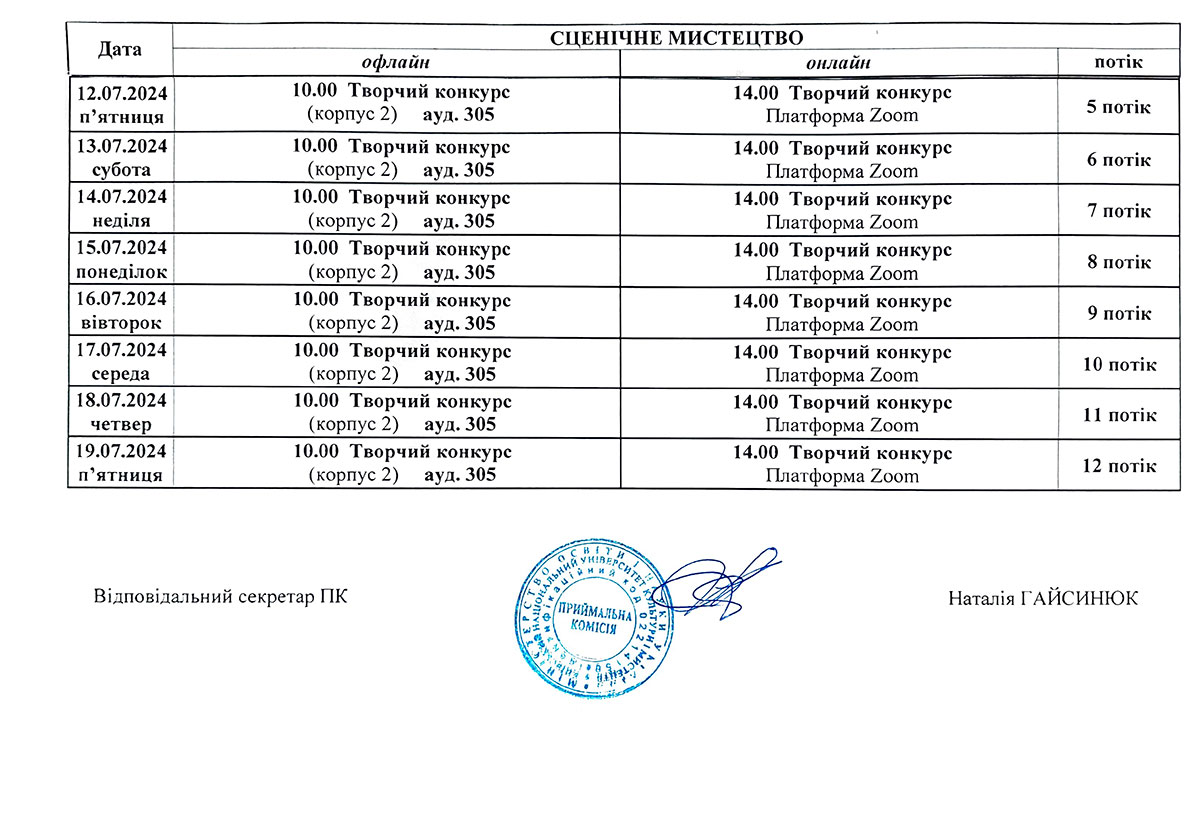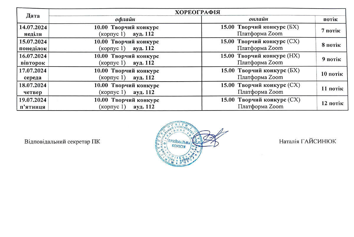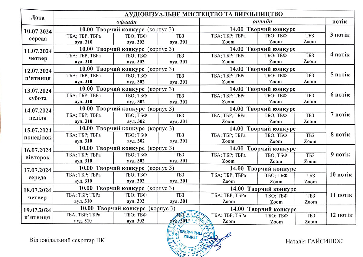 Розклад консультацій та творчих конкурсів/Бакалаврат