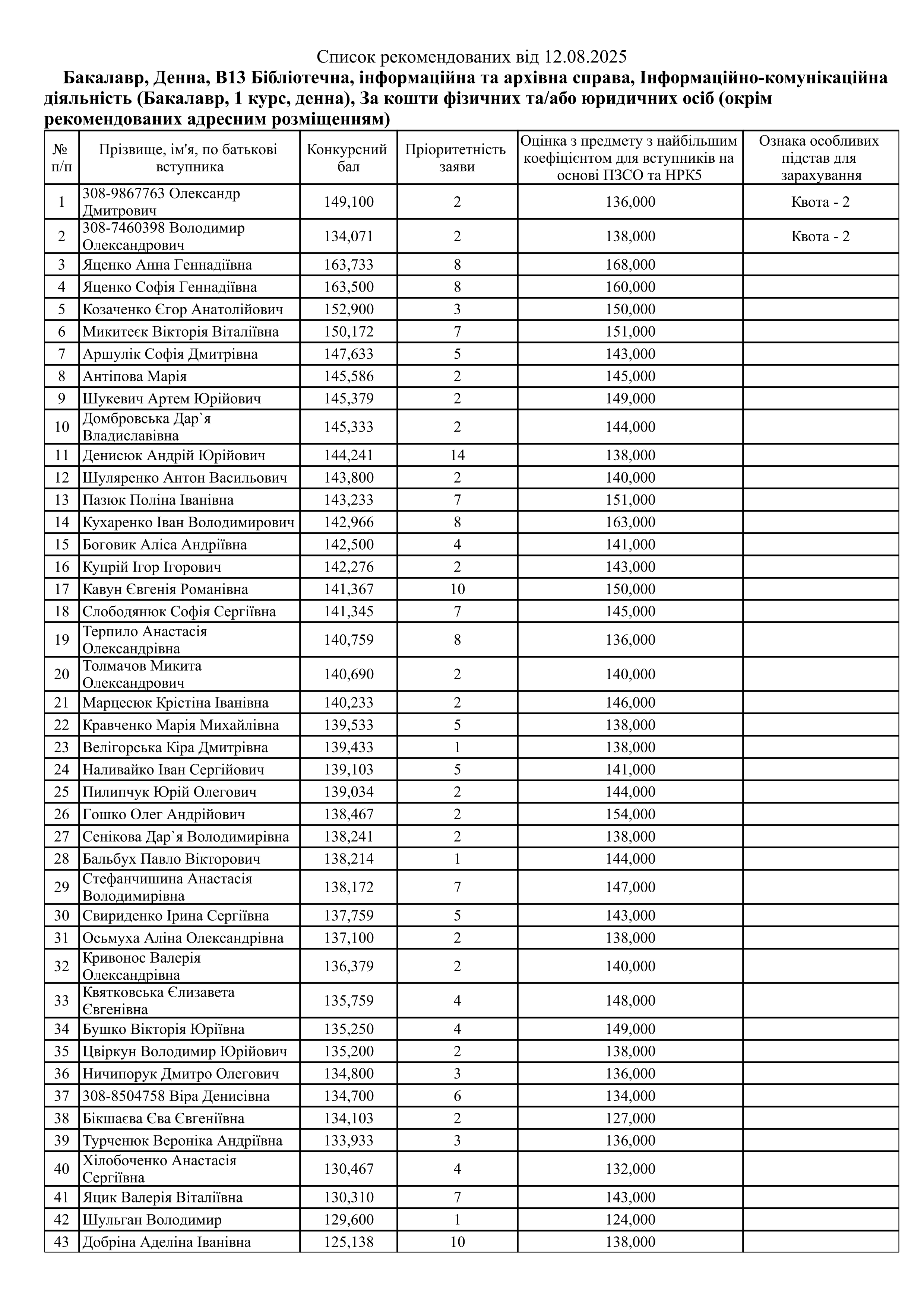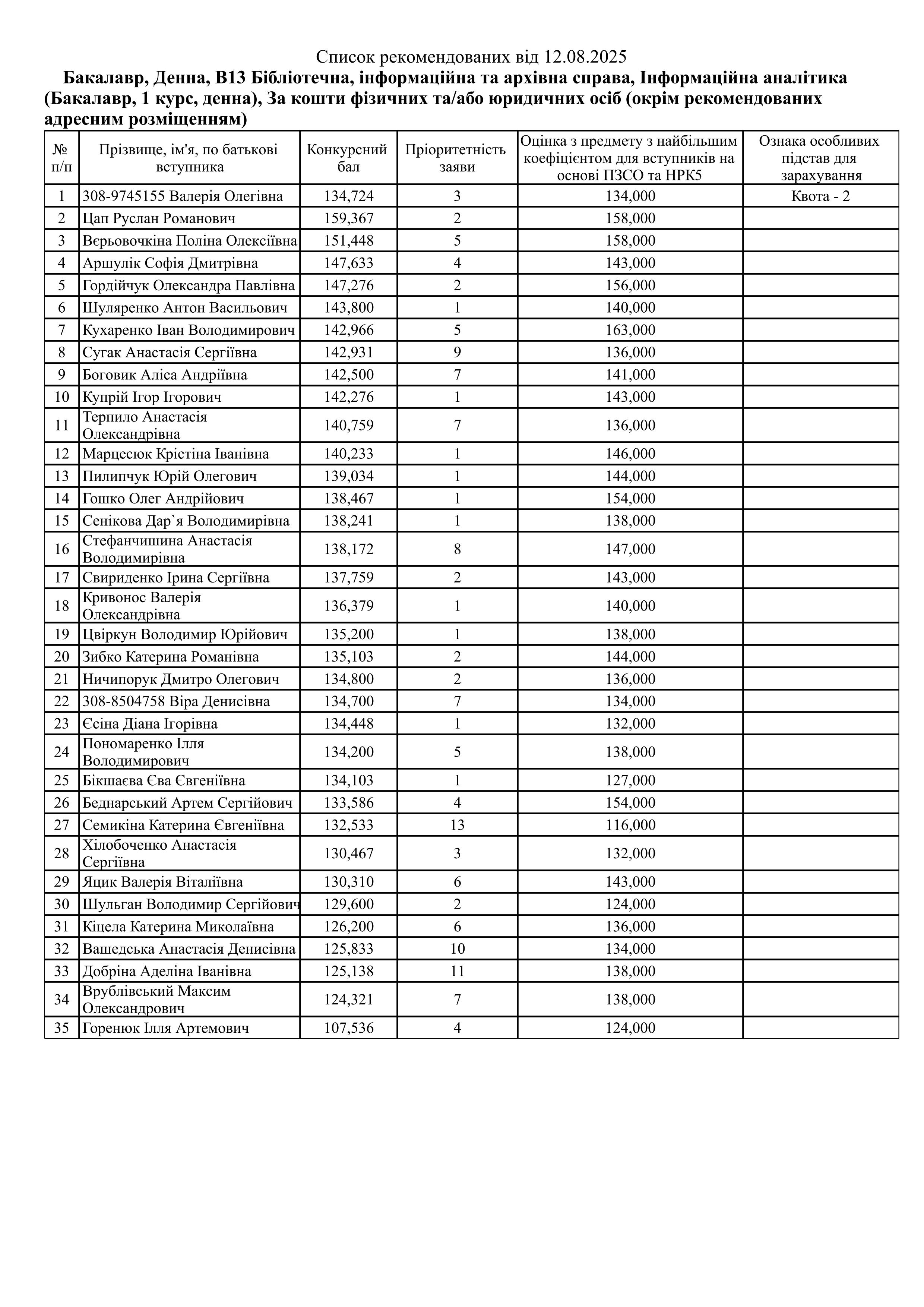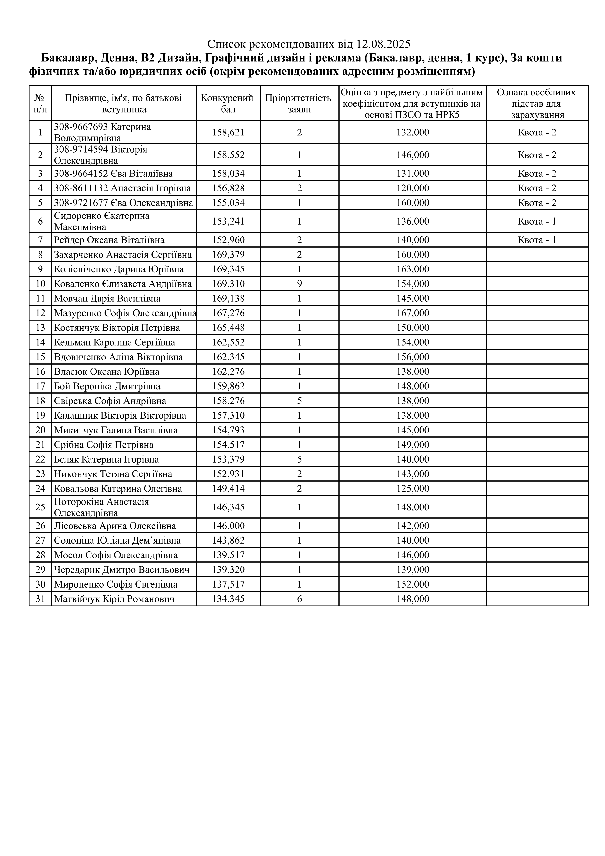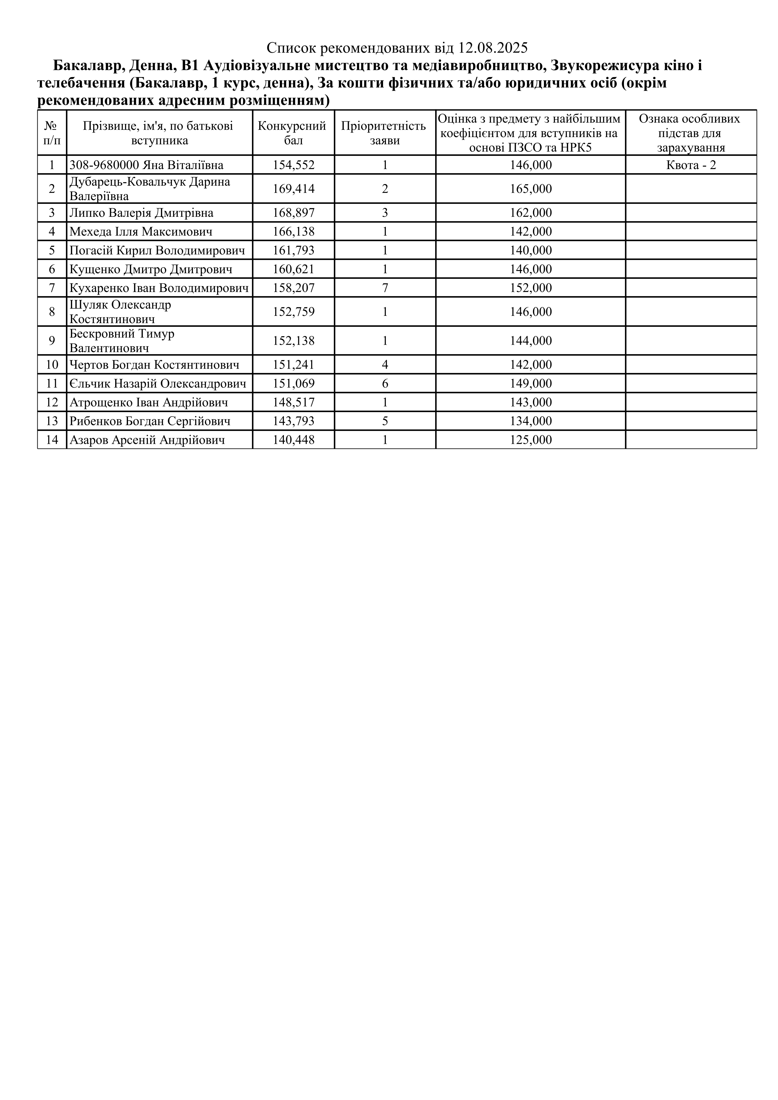 Списки рекомендованих Контракт (ОС Бакалавр)