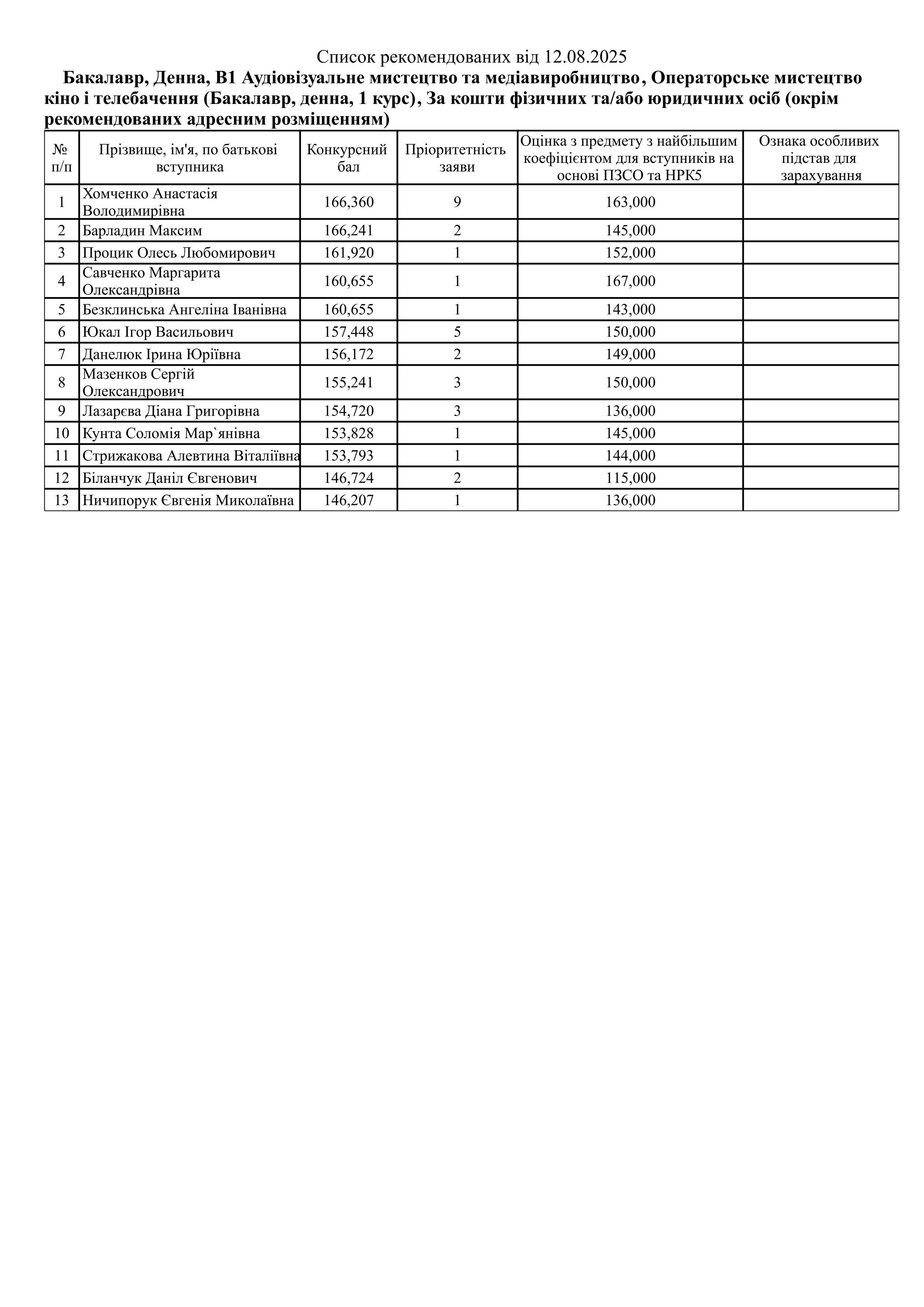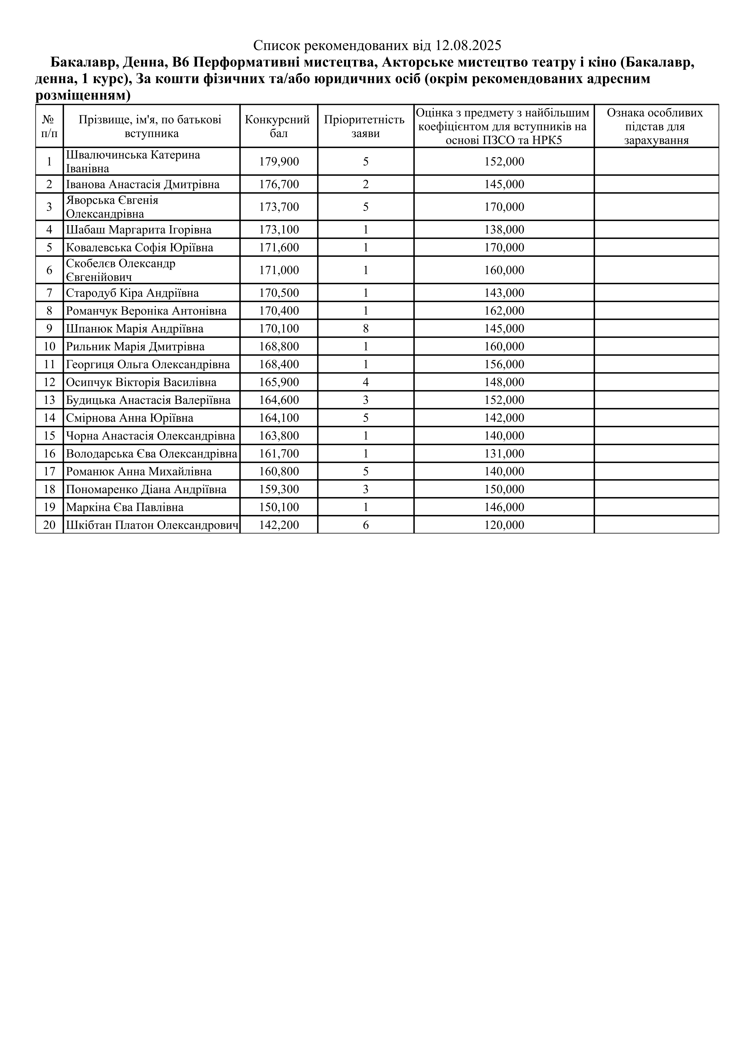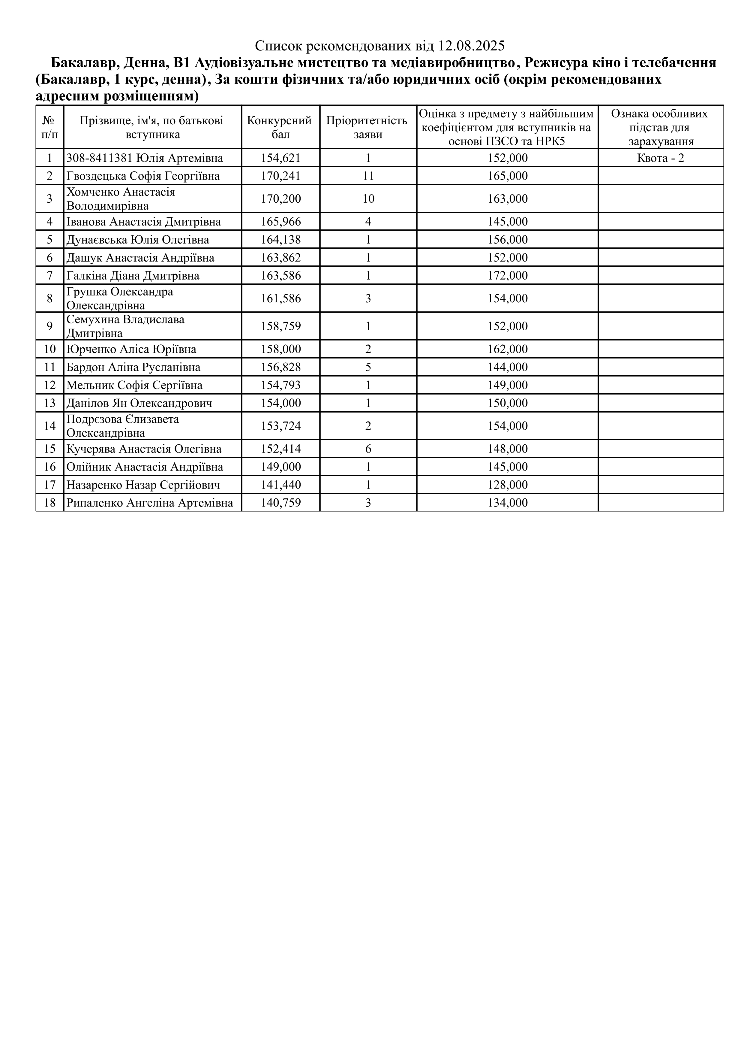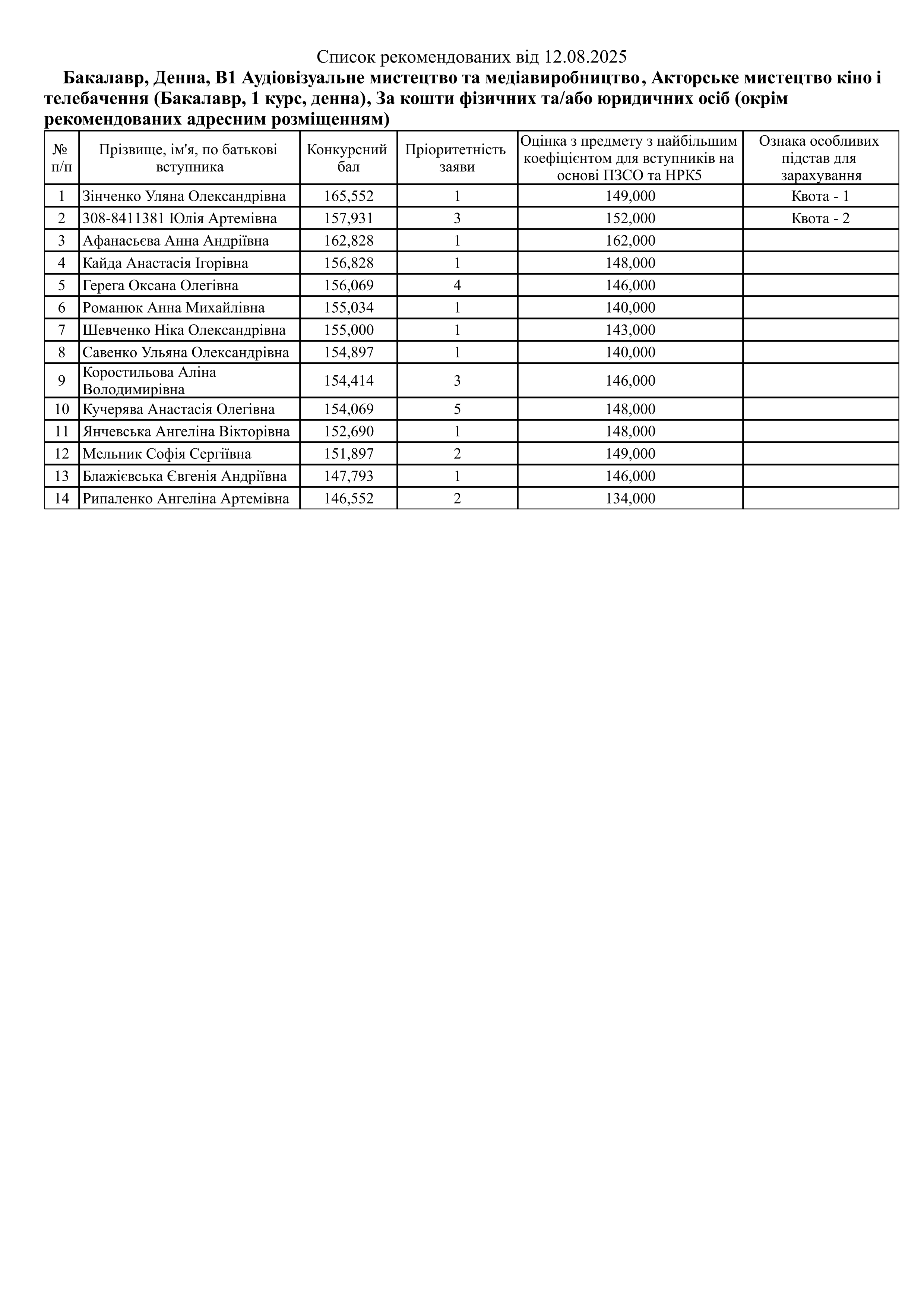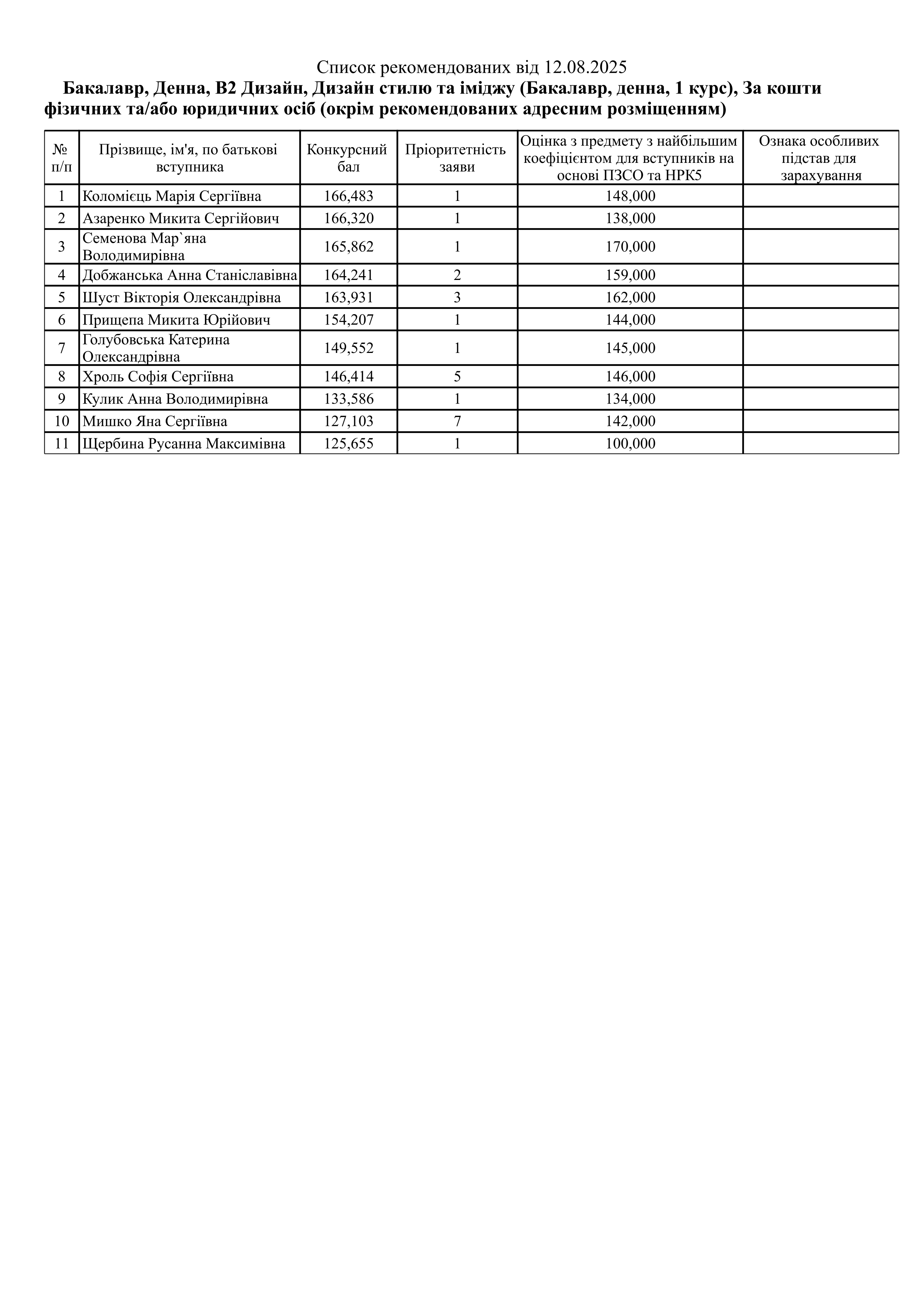 Списки рекомендованих Контракт (ОС Бакалавр)