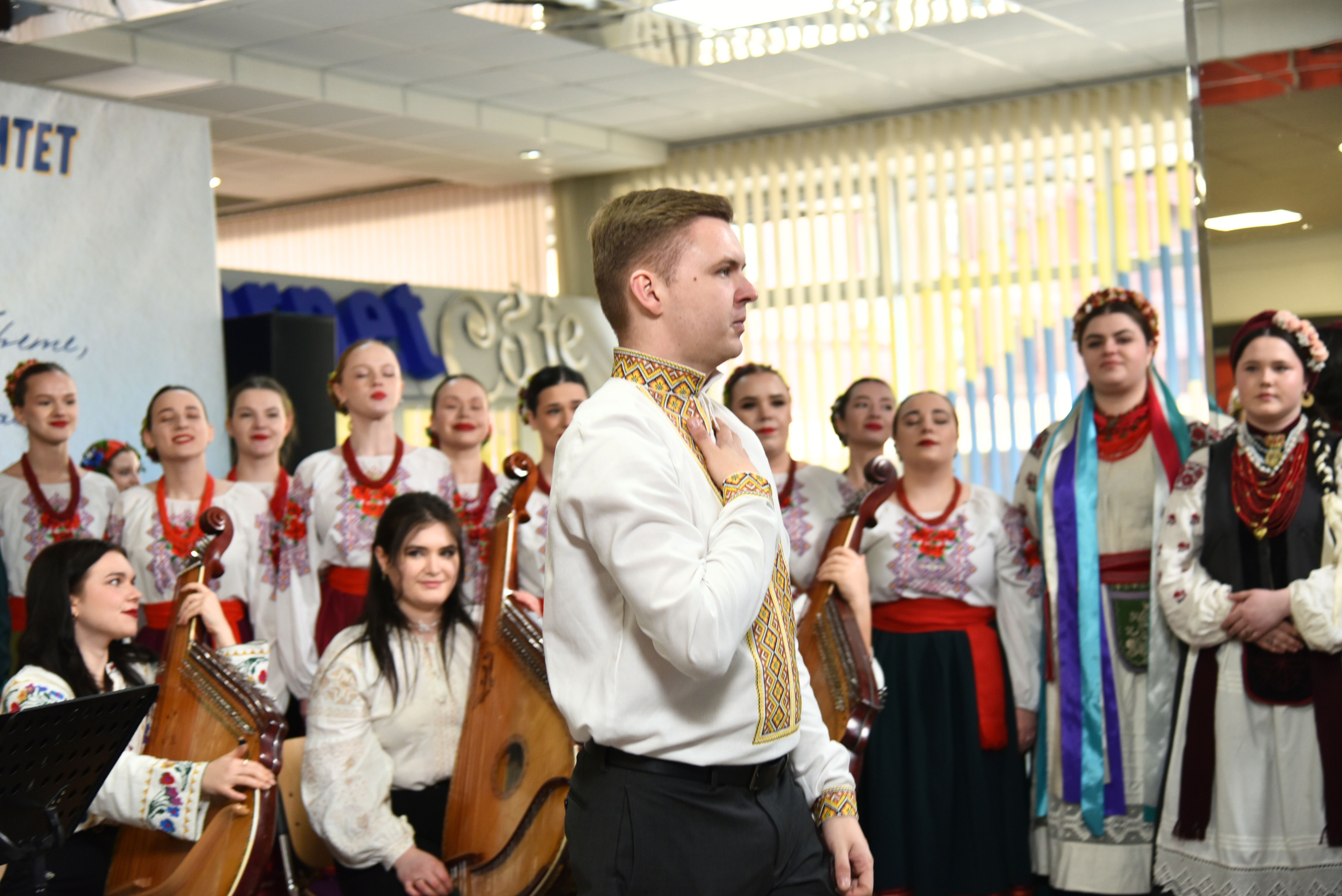 Фольклорний ансамбль «Кралиця» (керівник – заслужений працівник культури України, доцент Іван Сінельніков) виконав пісню «Защебетав соловейко» на слова Тараса Шевченка та повстанську композицію «Україна, рідна мати».