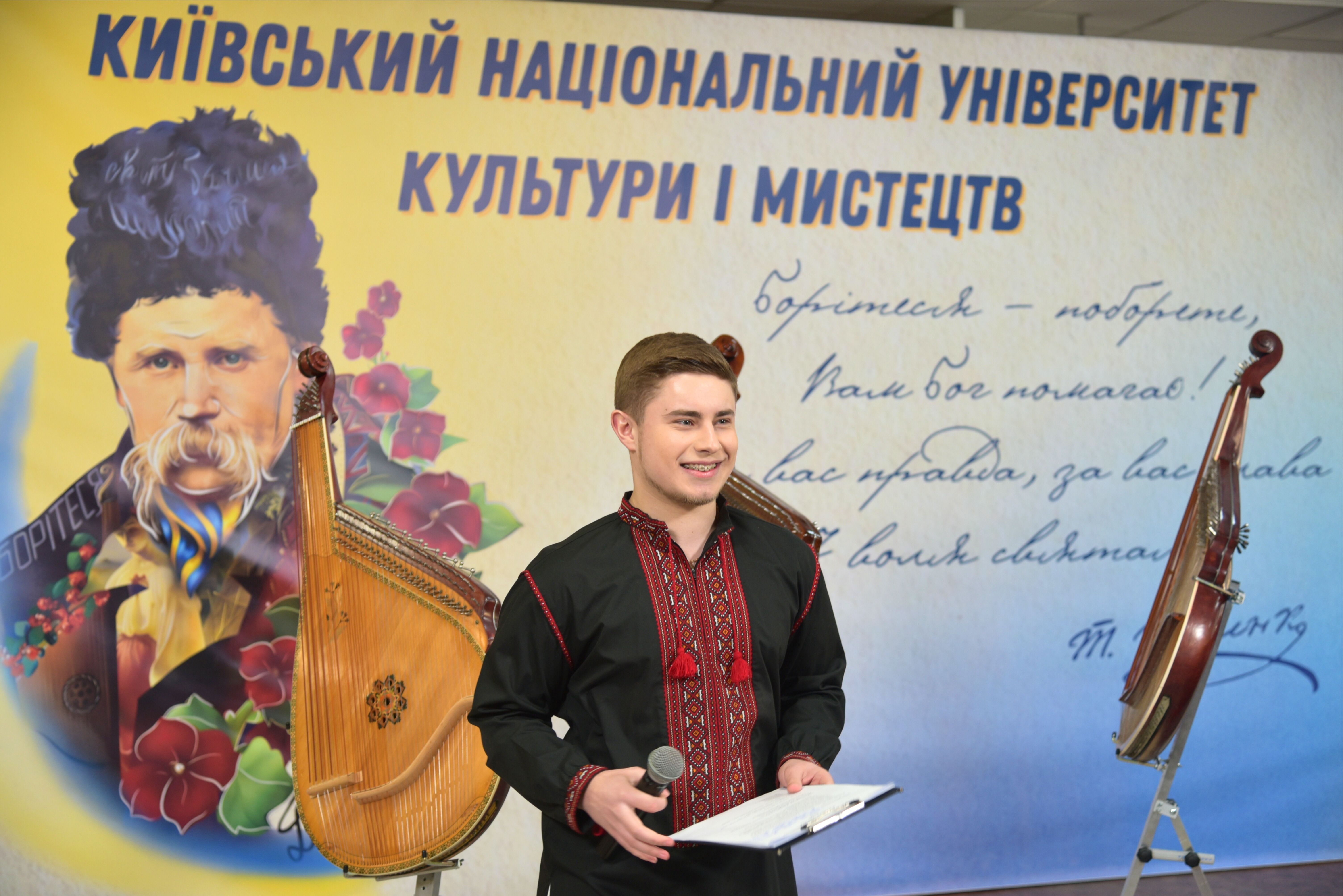 Творчий захід, організований Студентським парламентом КНУКіМ, об’єднав студентів різних мистецьких напрямів, які через музику, пісню та танець вшанували постать великого Кобзаря та силу його слова до 212-ої річниці з дня народження.