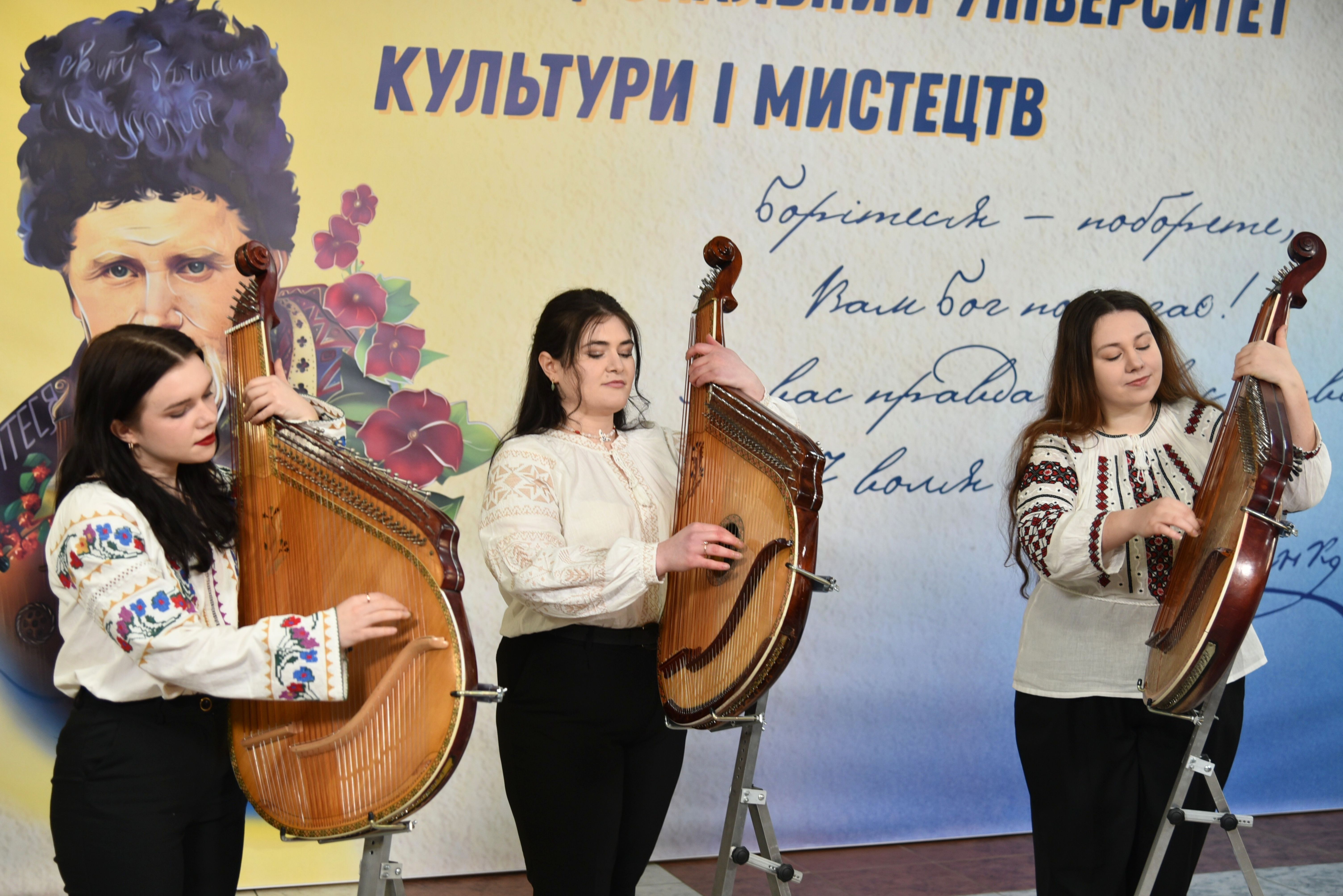 Перед глядачами виступили тріо бандуристок «Ренесанс» Факультету музичного мистецтва у складі студенток Оксани Хавтур, Юлії Чумак та Катерини Потапенко.