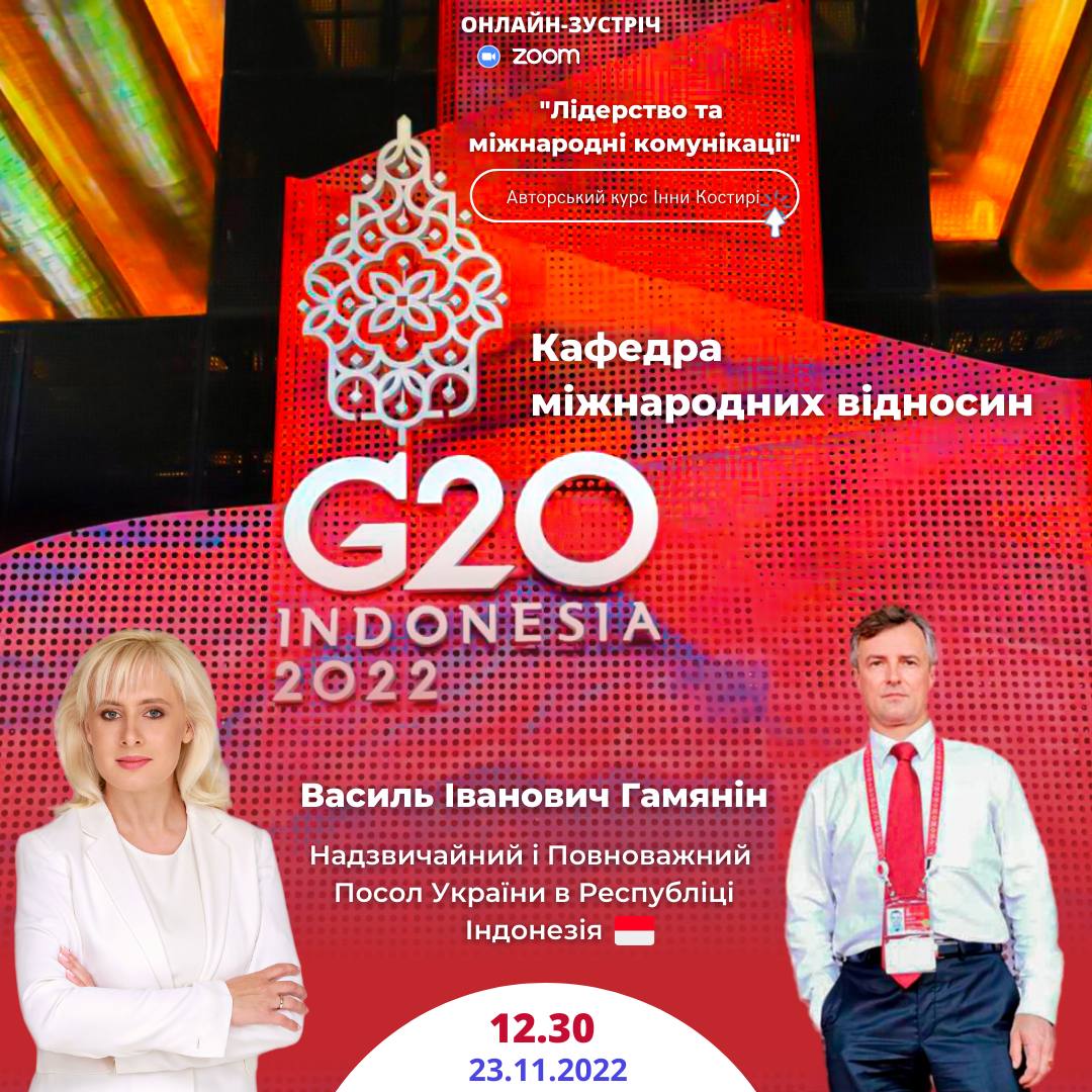 23 листопада в рамках авторського курсу докторки політичних наук, професорки Інни Костирі «Лідерство та міжнародні комунікації» на кафедрі міжнародних відносин відбудеться відкрита онлайн-лекція Надзвичайного і Повноважного Посла України в Індонезії Василя Івановича Гамяніна.