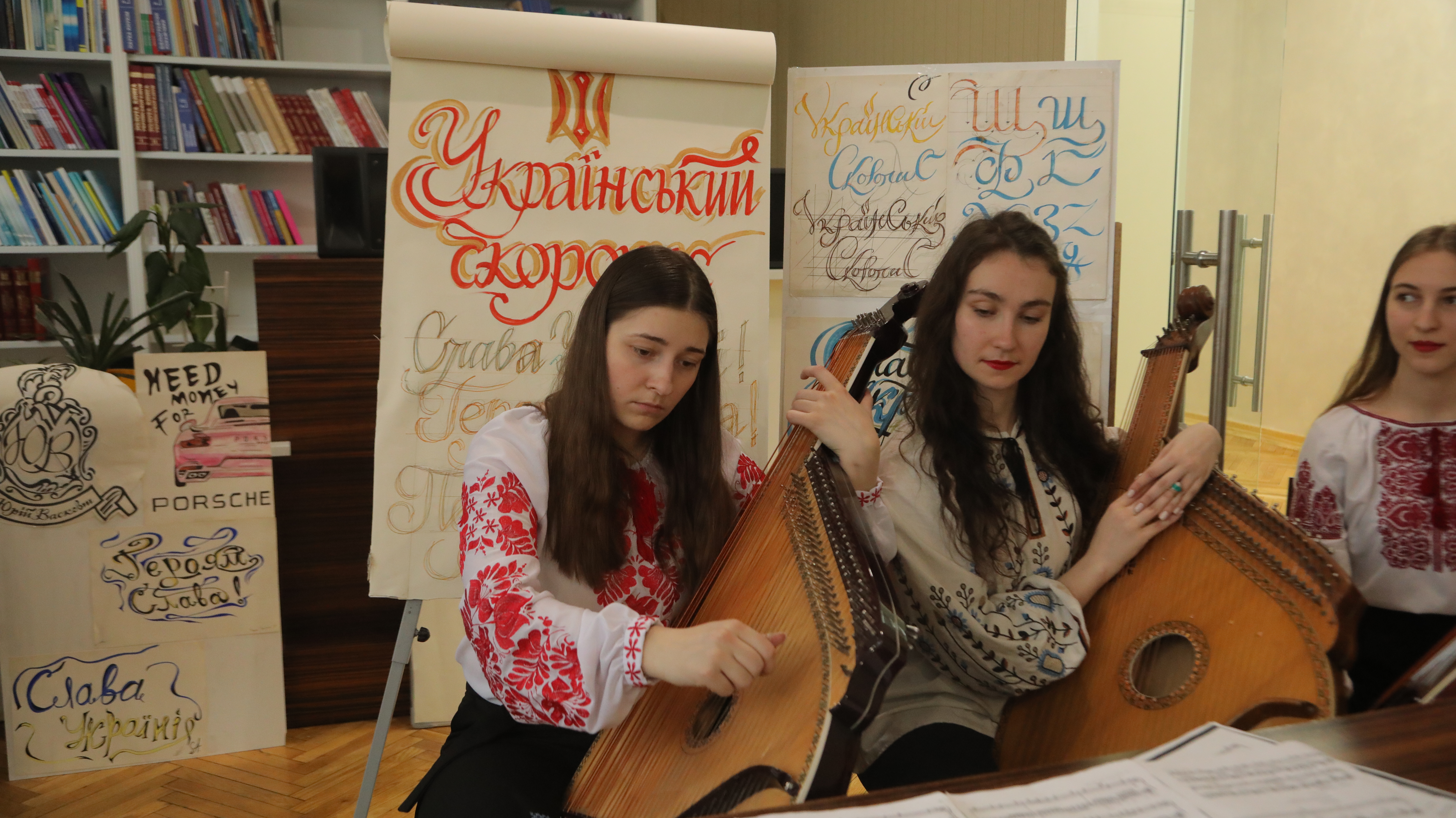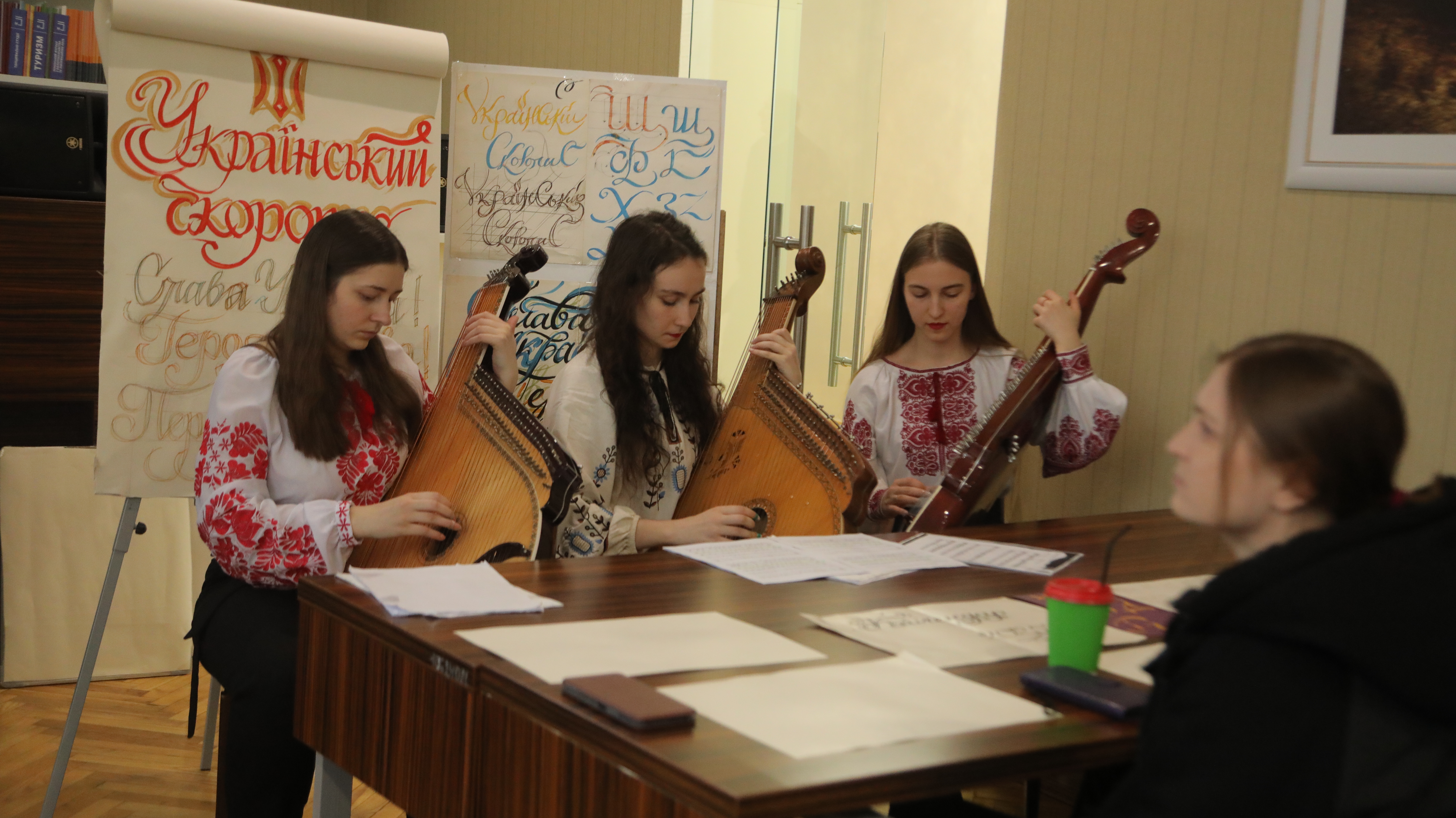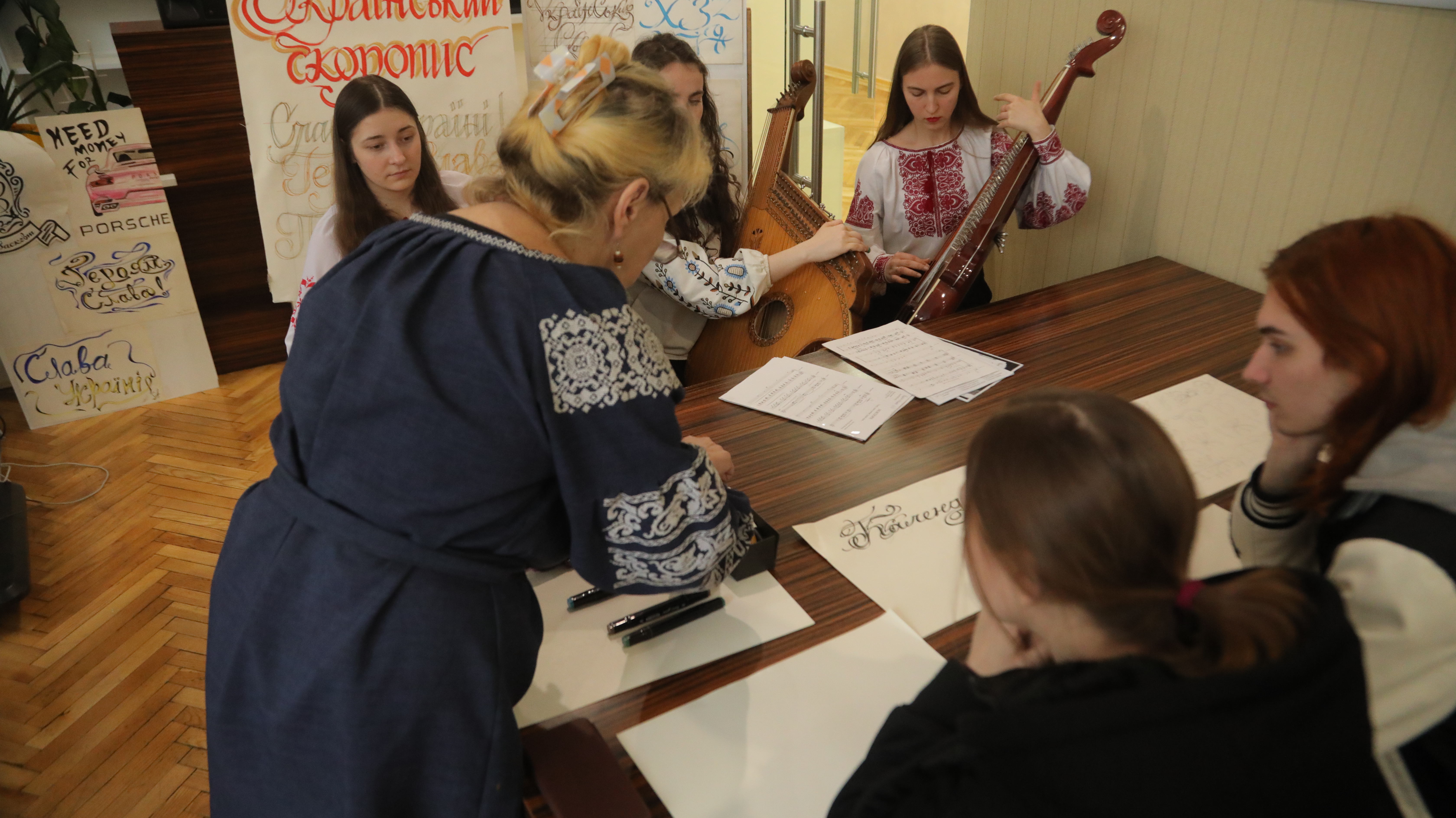 Знайомство з історією козацького шрифту, вправляння в його написанні відбувалося під супровід бандури. Студенти кафедри музичного мистецтва Уляна Бровій, Вікторія Ракитянська, Софія Пилипенко під керівництвом Заслуженої діячки мистецтв України Надії Брояко виконували класичні та сучасні музичні твори, композиції, написані на вірші Шевченка.