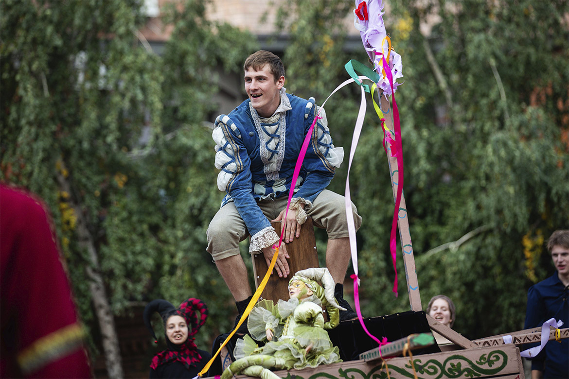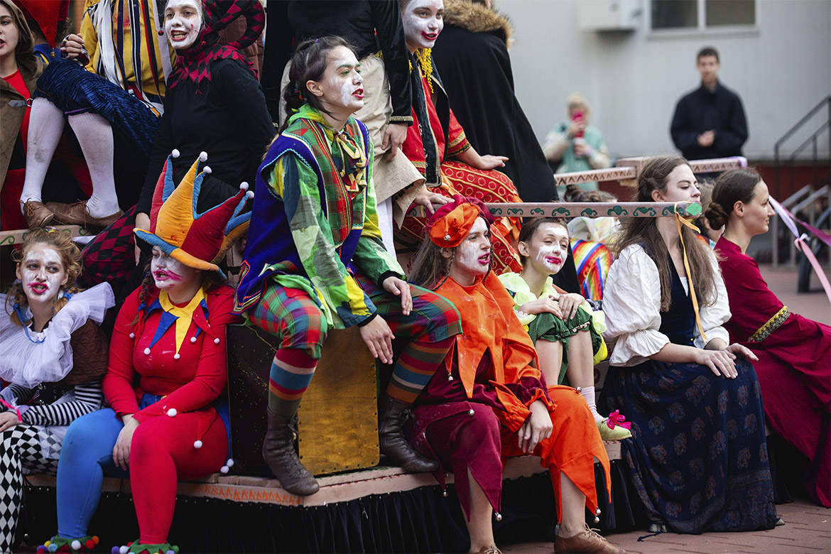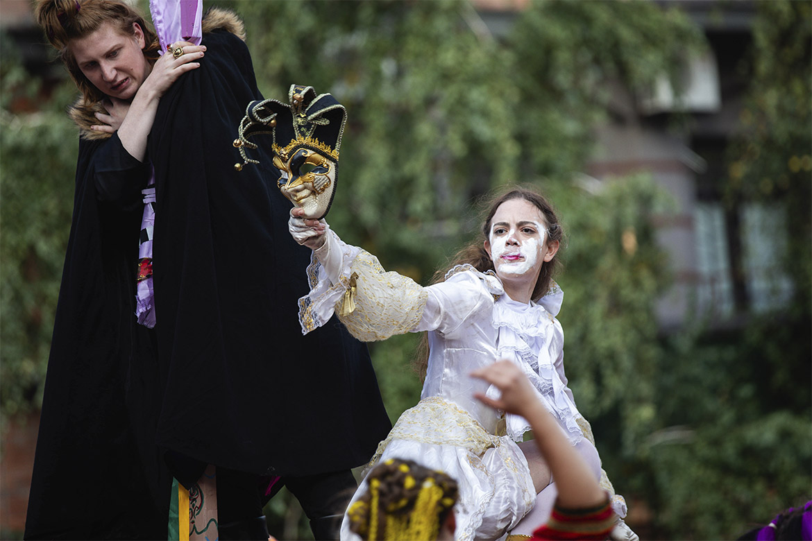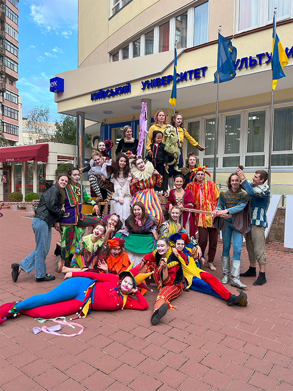 На головній площі університету відбулася незабутня вистава під назвою «Блазні», яка захопила всіх присутніх своїм яскравим виконанням, живою енергетикою та незвичним підходом до театрального мистецтва.