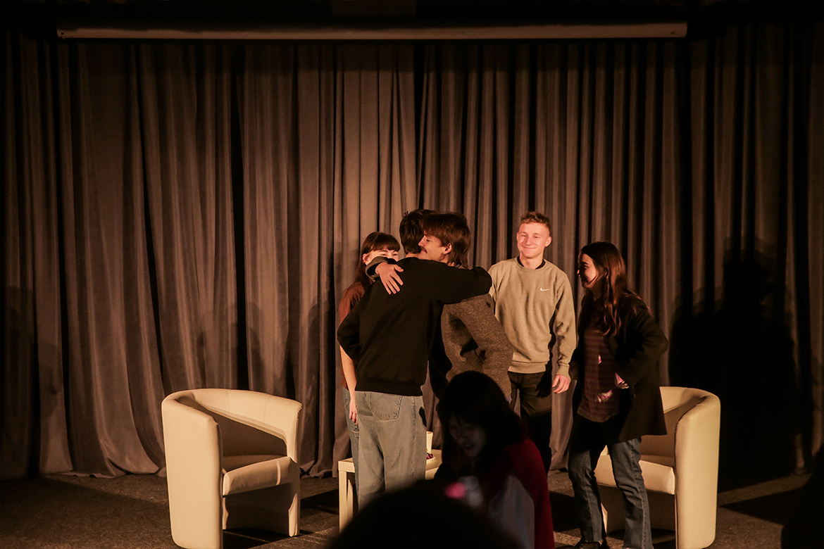Варто зазначити, що всі актори на сцені, як і більшість студентів в залі, вільно володіли англійською мовою, що надавало додаткові можливості для комунікації.
