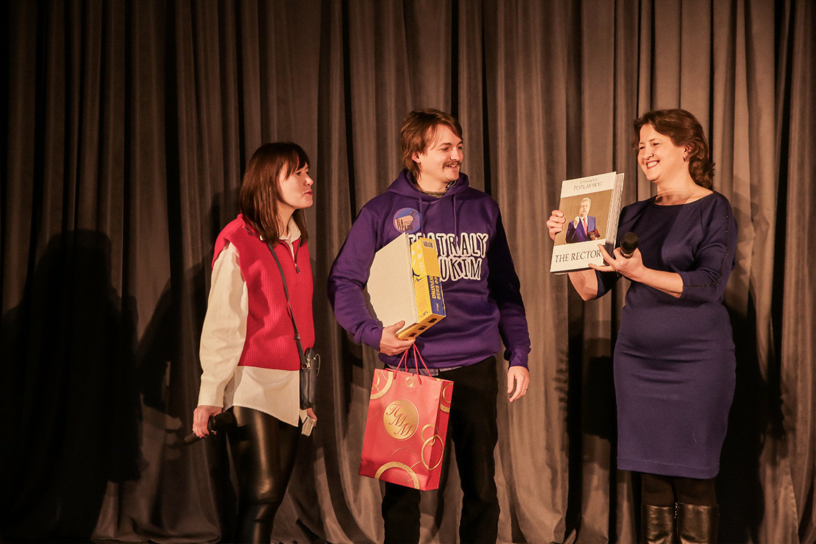 Декан факультету Ірина Іващенко, представляючи зіркового гостя, подякувала йому, що він у такий тяжкий воєнний час вирішив приїхати до України з важливою місією – допомогти Збройним Силам України – та поділитися своїм професійним досвідом із майбутніми акторами, режисерами, українською творчою елітою театру і кіно.